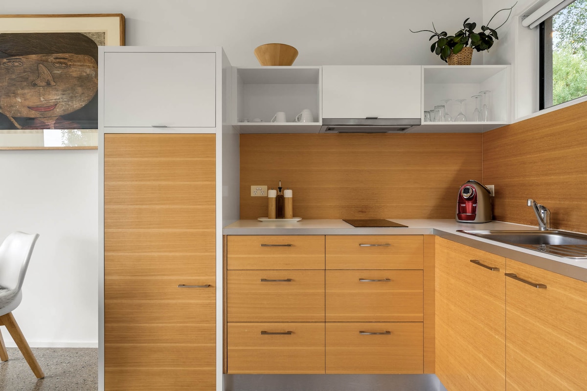 Breathe easy the moment you walk into the courtyard of The Tin Pod. This light, Bright, modernly appointed space, located right on the edge of beautiful bush land to explore will instantly transport you to a more relaxed state of being. A perfect couples retreat to rejuvenate the body and mind. Alternatively if you seek a more active getaway there are walks to be done, cafes to visit, mountain bike trails to explore, snowfields to conquer.....all on the doorstep of “The Tin Pod”.