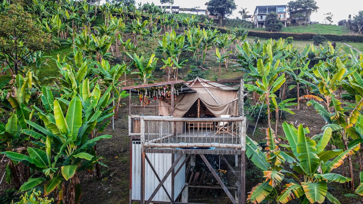 Glamping en medio de los bosques de Boquía en Salento Quindío. Ambiente de flora y fauna silvestre. Un glamping en construcción rustica con materiales de la región como la guadua y maderas y en combinación con acabados modernos. Frutas, café, cereales y yogurt gratis durante la estadía. Cerca a ríos, cascadas y rutas para avistamiento de aves. Dotación completa de cocina y equipo para avistamientos de flora y fauna. wifi, agua caliente, parqueadero. Ambiente totalmente privado e independiente.