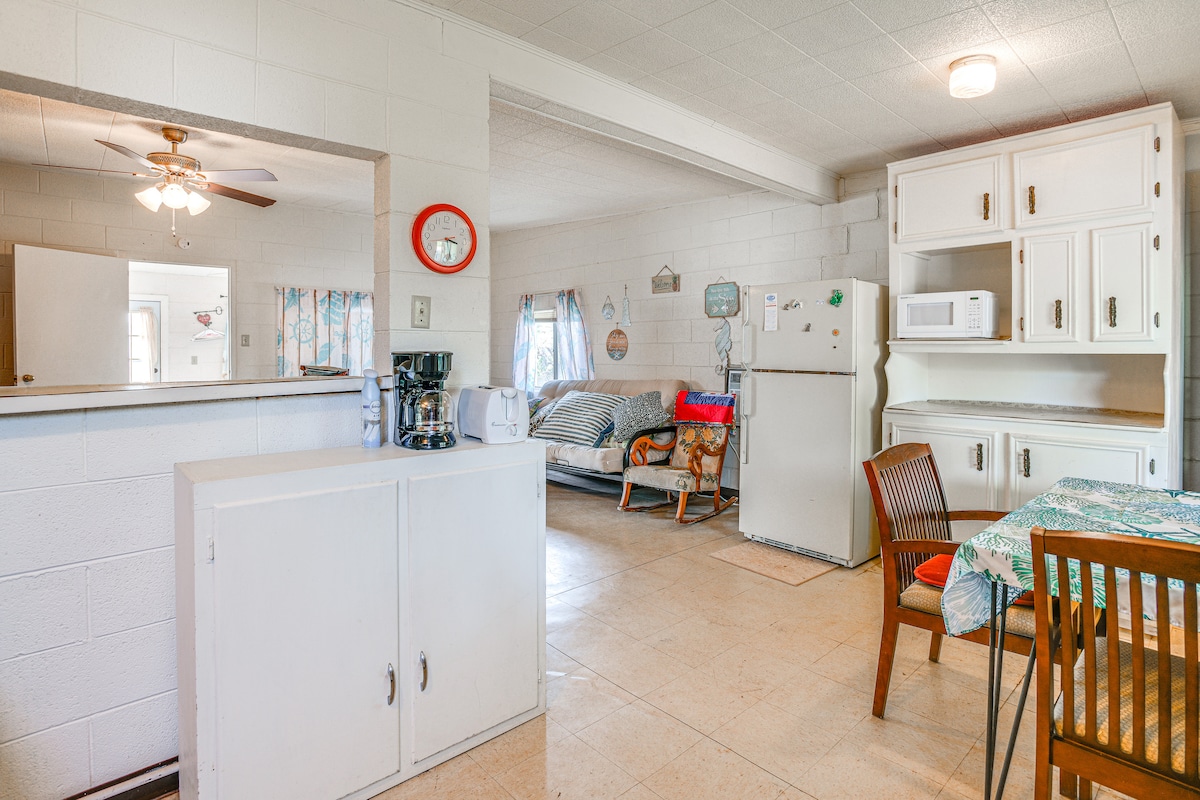 Book your next peaceful Lone Star State retreat at this 1-bedroom, 1-bath Blackwell vacation rental! This cozy cottage features an open living area with a flat-screen TV, a well-equipped kitchen, and a private outdoor space with on-site access to Oak Creek Reservoir. Pick up some bait at the nearby shop and embark on a fishing adventure, then head to town for quaint shopping or a bite to eat at Blue Agave Cattle Company! Back home, unwind with a drink on the patio and relish the water views.