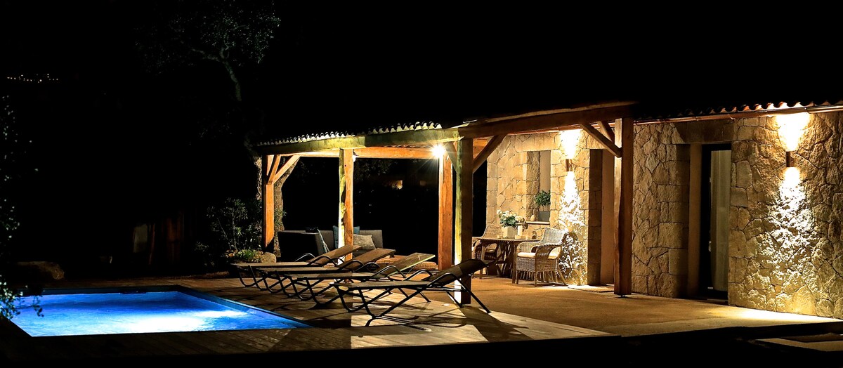 Очаровательная каменная резиденция в регионе, полностью построенная владельцем, с уважением к окружающей среде, между морем, горами и бассейном (5-звездочный рейтинг). В 5 минутах от знаменитого ущелья Аско, реки, водопадов. 25 минут от самых красивых пляжей Бальанья, Острикони, Лозари. В нетронутом месте, в абсолютном спокойствии с великолепным видом. Это место идеально подходит для романтического отдыха с частным доступом к панорамному бассейну владельцев. Оптоволоконный Интернет