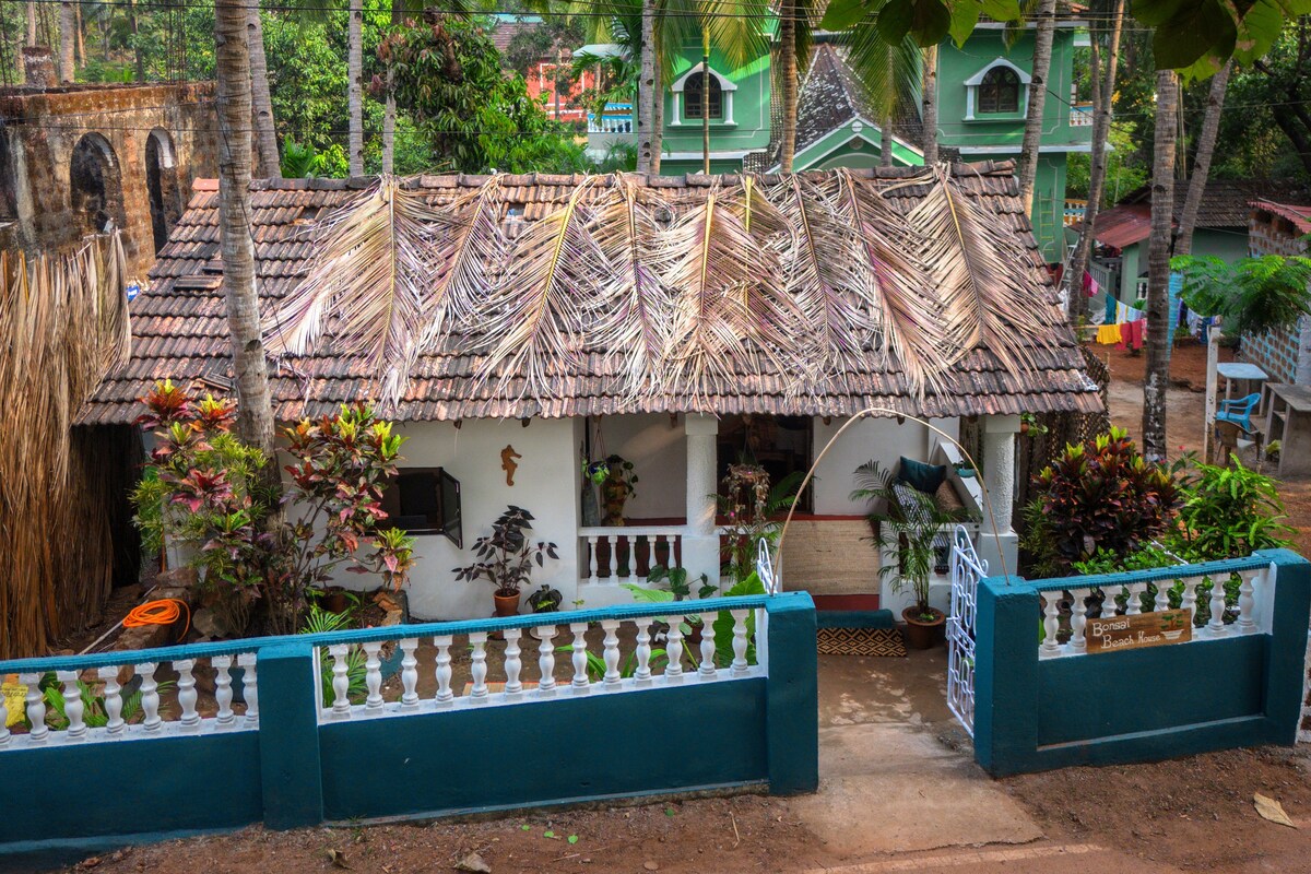 Agonda beach is a short stroll away from this cute and cozy Bonsai Beach House. The house features a separate work and stretch space, ocean-inspired décor, and a breezy porch--the perfect backdrop for your susegad South Goa beach vacation. The house--with its kitchen, separate workspace, AC, power backup, and high speed WiFi--feels easy and comfortable. Book with us and get access to our exclusive local guide with helpful contacts for surfing lessons, massages, nature treks, and more!