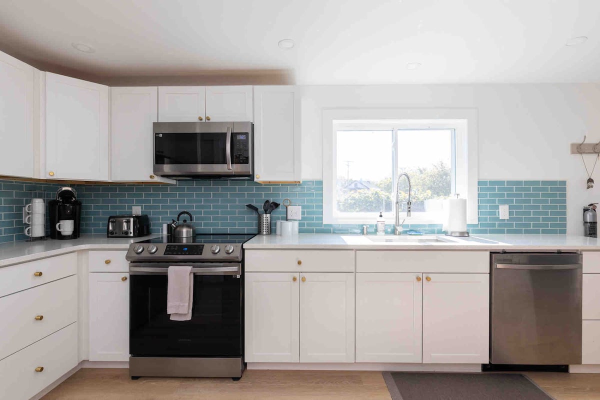 Kick back and relax in this stylish space located less than 3 miles to downtown and under a mile walk to lake vistas & beaches. Access to the bike path is at the end of the street. Perfect for cyclists, runners, bikers, dog walkers & beach goers. Completely remodeled house with new appliances, fully equipped kitchen, laundry & high speed internet. Two bedroom suites each with their own bathroom; the King suite upstairs has additional TV & sitting area. Plus there is a bonus room with futon.