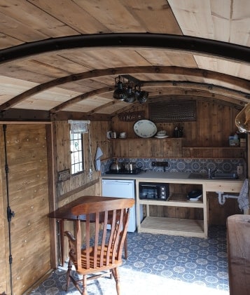 Красивый частный пастуший фургон с видом на озеро