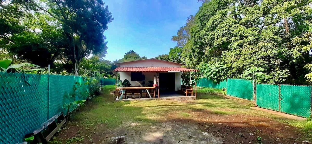 Загородный дом в деревенском стиле, небольшой с 2 комнатами, гостиной, столовой, кухней, полностью оборудованной ванной комнатой, деревянным гаваником на открытом воздухе и плиткой с оборудованием, где вы можете вдохновиться, отдохнуть с семьей или парой, заняться йогой и даже отправиться в бизнес с большой независимой террасой, окруженной широким выбором фруктовых деревьев, прогулок, баскетбольной площадки, - это более 3000 кв. м зеленых зон, которыми вы можете насладиться. Оздоровительный центр, небольшой магазин, пиццерия прямо перед домом. Теплый город, полный дружелюбных людей.