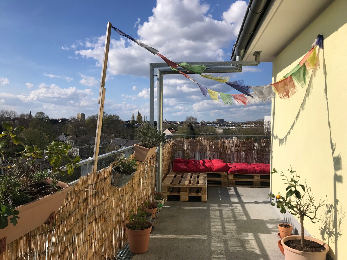 Просторная и светлая квартира с одной спальней (26 м²) с мини-кухней и отдельной ванной комнатой в пешей доступности от нескольких трамвайных и автобусных маршрутов, а также железнодорожного вокзала Кёльн-Эренфельд. Квартира расположена на тихой жилой улице на первом этаже старинного здания XIX века. Во дворе, прямо перед квартирой, есть небольшая терраса с двумя садовыми стульями и небольшим столом для эксклюзивного использования.