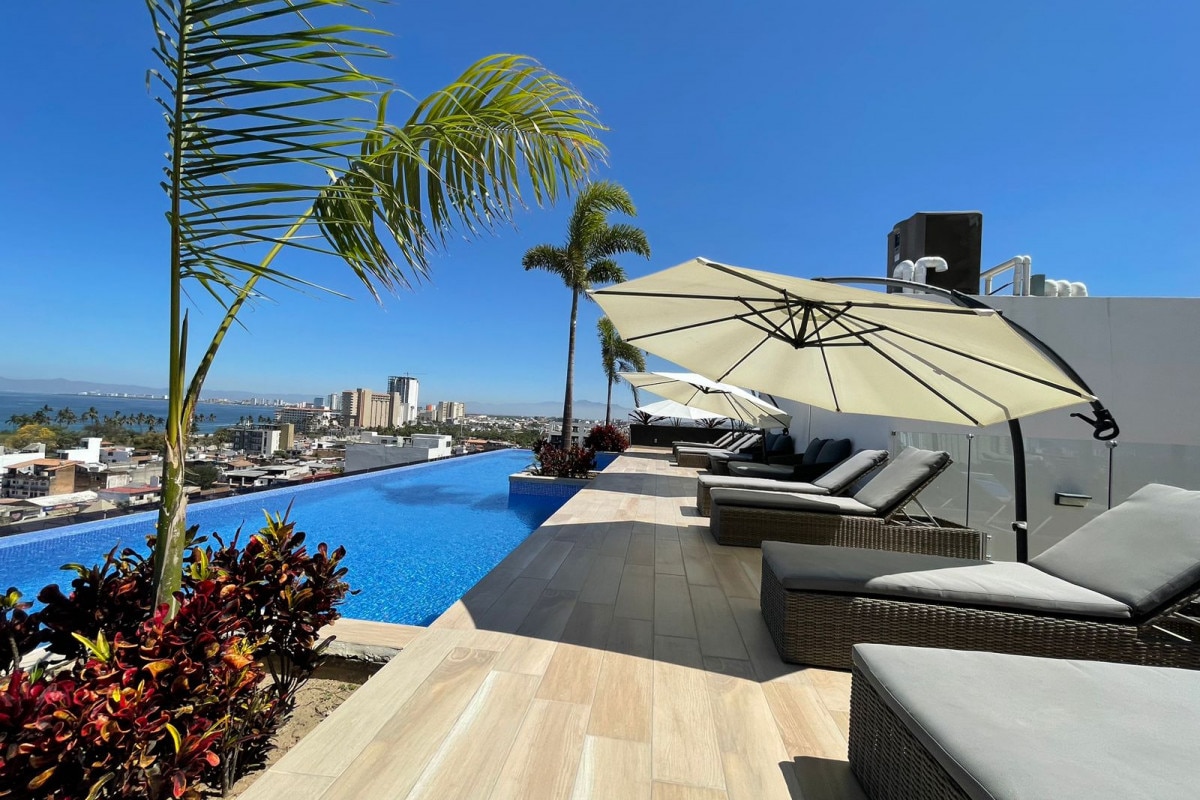 Вид на океан, закаты на крыше и лучшее из Пуэрто-Вальярты у вашего порога. Этот современный кондоминиум с 1 спальней расположен на 11-м этаже роскошного отеля 105 Sail View в центре Зоны Романтика — в трех кварталах от Плайя-Лос-Муэртос. Выйдите на улицу, чтобы посетить кафе, галереи, пляжные клубы и ночные клубы... а затем вернитесь домой, чтобы насладиться тишиной, возвышением и потрясающими видами на Тихий океан. Утренний кофе на балконе, послеобеденные часы у панорамного бассейна, вечера, когда солнце тает в океане — и вы парите над всем этим.
