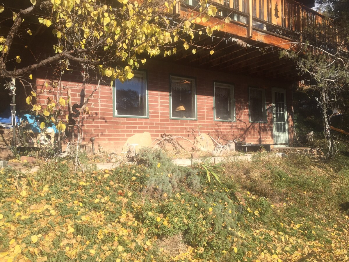 420 friendly.....This is a Light Flooded Basement Apartment With optional use of Awesome Tipi. We also have a Sweat lodge on the property. One mile from downtown Glenwood Springs, and Hot Springs pool. Also 1 mile to iron Mountain Hot Springs. Close to Ski areas, Biking, Fishing,Rafting, Jeep roads, Parasailing, Golf. 1 mile from Glenwood adventure Park and caves. Turn at the FIRST driveway on Vista Dr.