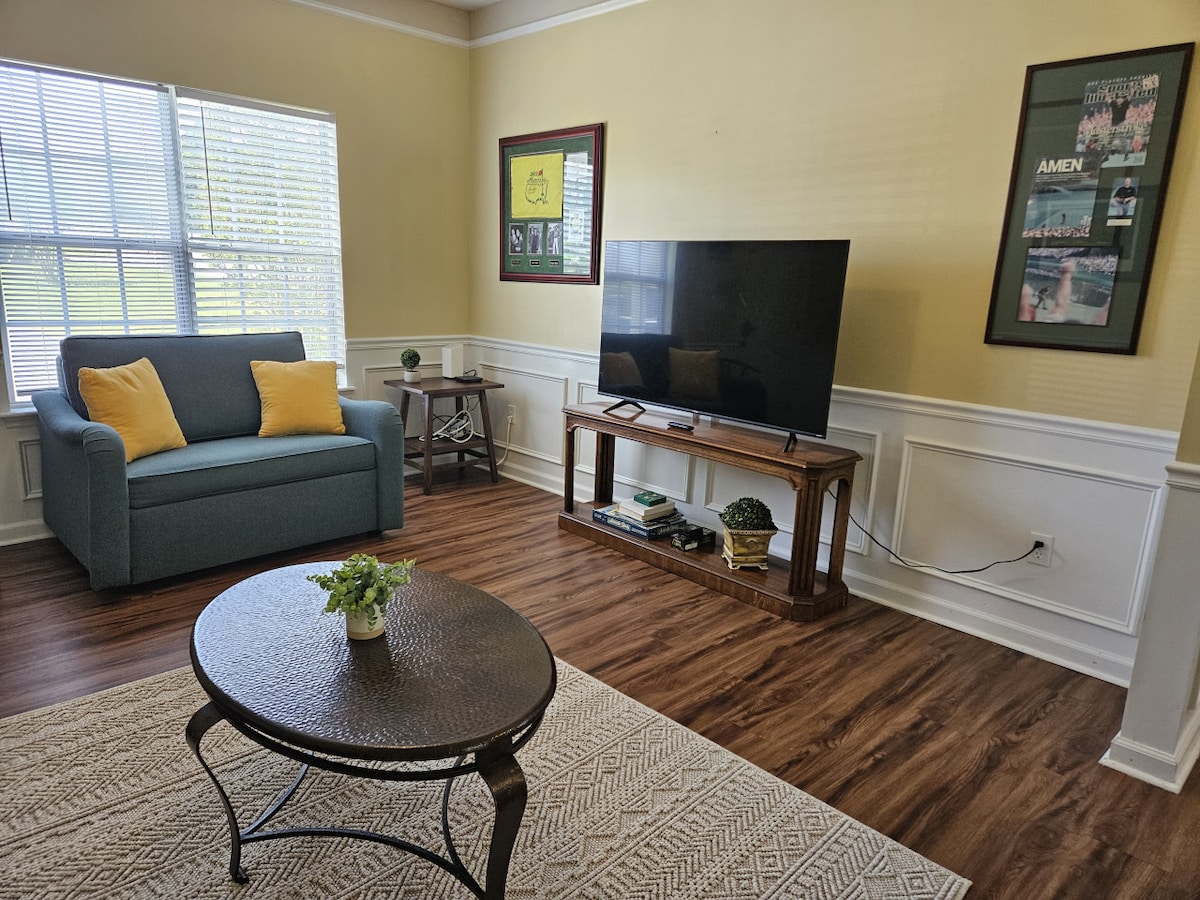 Удивительное расположение рядом со всем: рестораны, магазины, развлечения и The Augusta National совсем рядом! Удобные двуспальные кровати размера King size и Queen size с эффектом памяти, высокоскоростной Wi-Fi, стол с зарядной станцией, зона для кофе/чая, 55-дюймовый телевизор в гостиной и 40-дюймовый и 32-дюймовый в спальнях. 1 миля до The Augusta National = 15 минут пешком или в нескольких минутах езды; 10-12 минут езды до центра города/Киберцентра, Медицинского района, MCG и Университета Огасты; 20 минут езды до Форт-Гордона и регионального аэропорта Огаста.