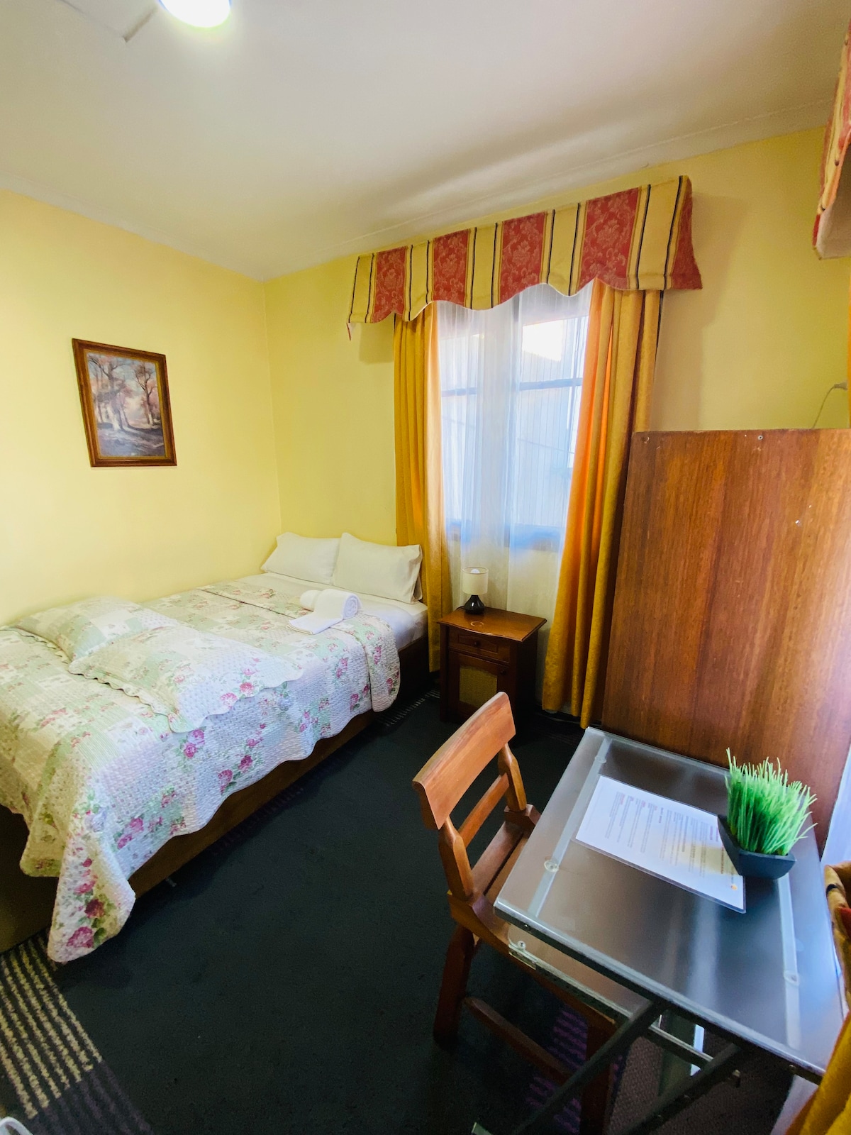 Мы находимся на стороне Udec, гастрономических центров, парка Эквадора и центра города. Мы работаем 24 часа в сутки. У нас есть бесплатная частная парковка на территории. В хостеле есть ресторан и кафетерий, внимание к публике в целом, где у нас есть представительское меню, и разнообразное меню, между сэндвичами, сладостями и домашними продуктами.