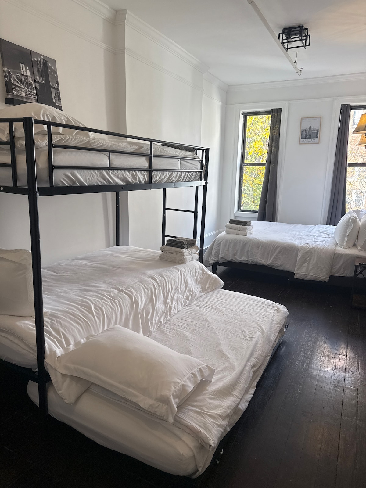 Наслаждайтесь всем отдельным светлым и очаровательным лофтом с мини-кухней в нескольких шагах от Центрального парка и метро. Идеально подходит для пар, индивидуальные путешественники или небольшие семьи — со стильной мебелью, быстрым Wi-Fi и теплой атмосферой, подходящей для домашних животных. Кровать размера Queen size, трехъярусная кровать и односпальный диван, который можно разложить в односпальную кровать. Расположена на третьем этаже здания.