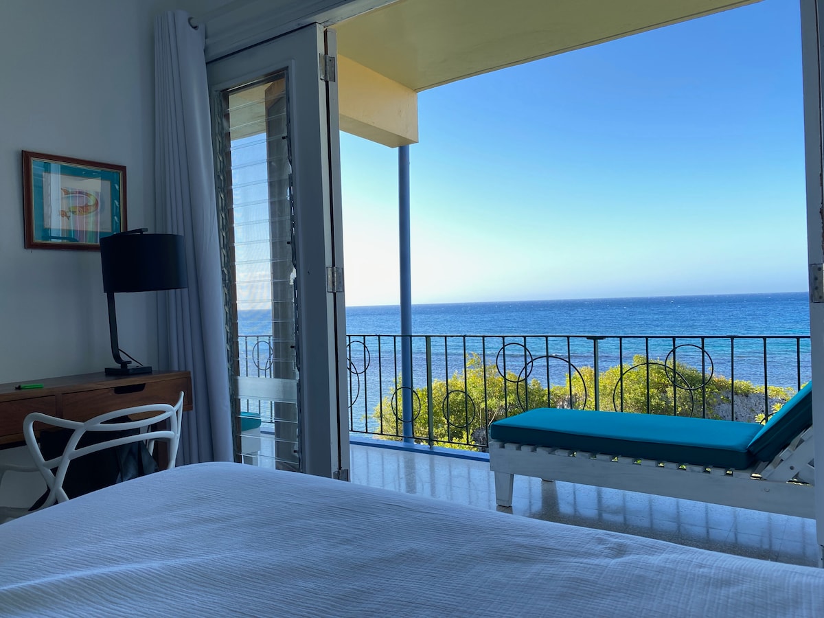 После урагана Мелисса у нас полностью восстановлено электричество, вода и Wi-Fi. Отдохните в этой потрясающей студии с видом на океан всего в 5 минутах от центра Очо-Риос. Студия недавно отремонтирована с гранитными столешницами на кухне и в ванной комнате, а также фарфоровой плиткой для роскошного, но домашнего уюта. Насладитесь огромным видом на океан и окунитесь в воду всего в нескольких шагах от патио. Эта студия идеально подходит для отдыха, слушая океан и наслаждаясь бризом