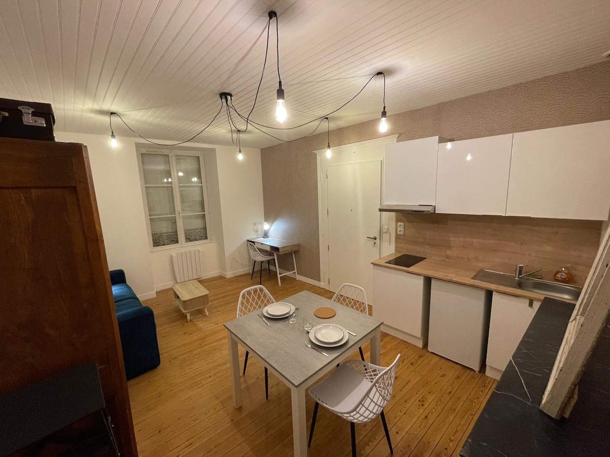 Отдельная студия, полностью отремонтированная внутри каменного фермерского дома, в самом сердце и тишине сельской местности Майенна. Гостиная с подключенным телевизором, кухня со всем необходимым (холодильник, плита, микроволновая печь, кофеварка...) Кровать 160 Широкий душ, отдельный унитаз. Доступно на том же сайте Квартира на 2/3 человека (https://airbnb.fr/h/appartementlapetitenoerie) и gite 11 человек (https://airbnb.fr/h/gitelapetitenoerie)