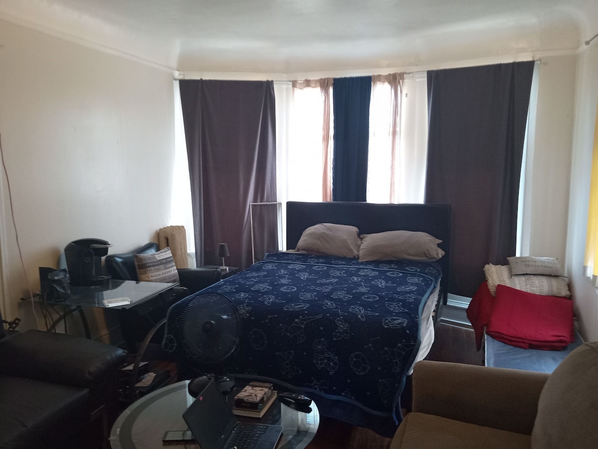 Welcome to your perfect retreat! This charming and fully furnished private room offers a cozy atmosphere that feels just like home. Ideal for students, professionals, or anyone seeking a peaceful space to unwind. This room combines comfort and convenience. Thoughtfully equipped with a plush Queen bed, soft linens, a dedicated workspace, large TV, solid WiFi, black out window panels, mini fridge + others. Enjoy a restful and rejuvenating stay in your personal sanctuary. Room shares a bathroom.