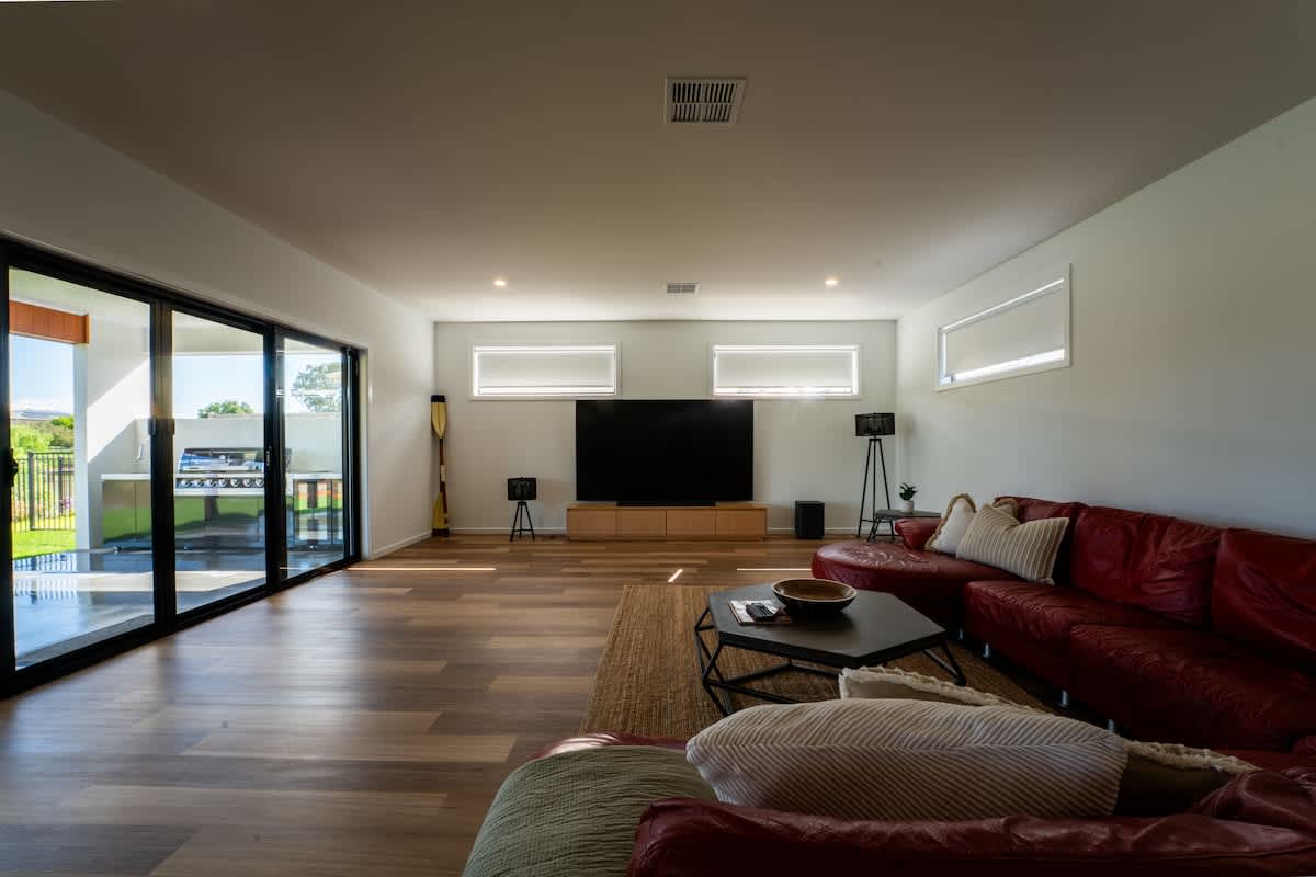 Welcome to a newly built retreat with lake views and everything you need to relax. Enjoy the deck, perfect for BBQs, morning coffee, or soaking up the quiet. At night, light the fire pit (subject to fire season) and unwind under the stars. Kids will love the books and toys. Inside, there’s good coffee, cozy spaces, and all the basics for a smooth stay. Just steps from the lake boardwalk and a short drive to Langhorne Creek wineries. ‘The Local’, Clayton Bay’s new cafe, is now open!