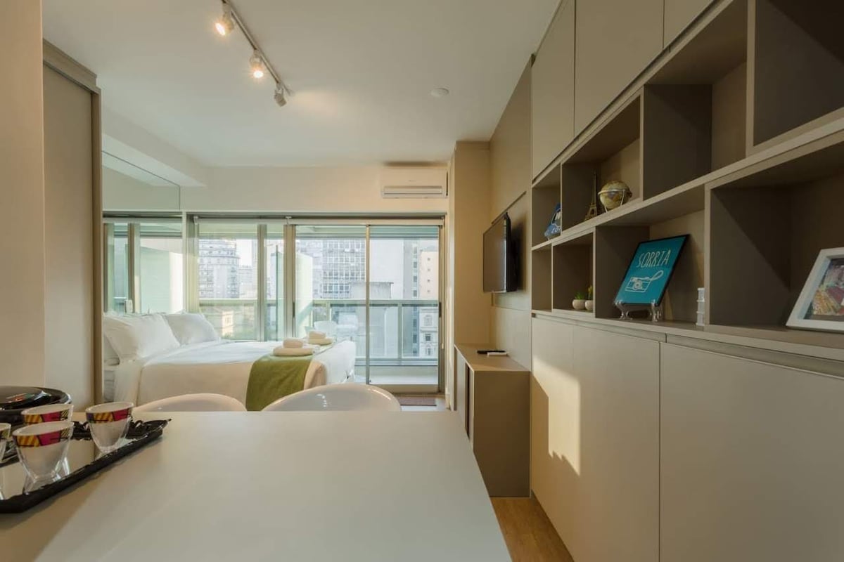 Новая студия в концептуальном кондоминиуме в центре Сан-Паулу. Уникальный опыт: > высокоскоростной Wi-Fi > смарт-телевизор с доступом в интернет > электронный замок > балкон > полностью оборудованная кухня > кондиционер > светонепроницаемые шторы > сэндвичница > электрический чайник > мини-бар. Полный комплекс удобств: > тренажерный зал > прачечная > коворкинг > мини-маркет > круглосуточная консьерж-служба. Привилегированное расположение: Rua da Consolação, 297