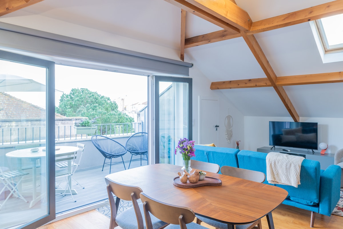 Отель Alves da Veiga Rooftop расположен в центре Порту, всего в 2 минутах езды от торгового центра Mercado do Bolhão. Это лофт площадью 200 кв. м с 2 спальнями (одна наверху и одна внизу), 2 ванными комнатами (обе внизу), просторной террасой и 2 балконами. Он полон света и пространства для 4 человек. Вы можете припарковать свой автомобиль на нашей частной парковке и подняться на крышу. Просторная терраса идеально подходит, чтобы расслабиться после долгого дня и насладиться бутылкой вина с видом на городской пейзаж!