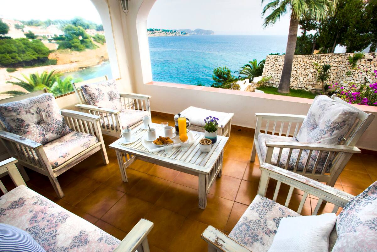 Мы снимаем квартиру на верхнем этаже этой замечательной виллы перед Средиземным морем. Дом расположен на пляже на красивом пляже "la Fustera", с частным выходом на него и потрясающим видом на море. К услугам гостей красивая терраса с видом, собственный бассейн и частная парковка. Квартира внизу используется в отдельных случаях членами нашей семьи, с которыми вы могли бы только разделить парковку, доступ к пляжу и в отдельных случаях бассейн.