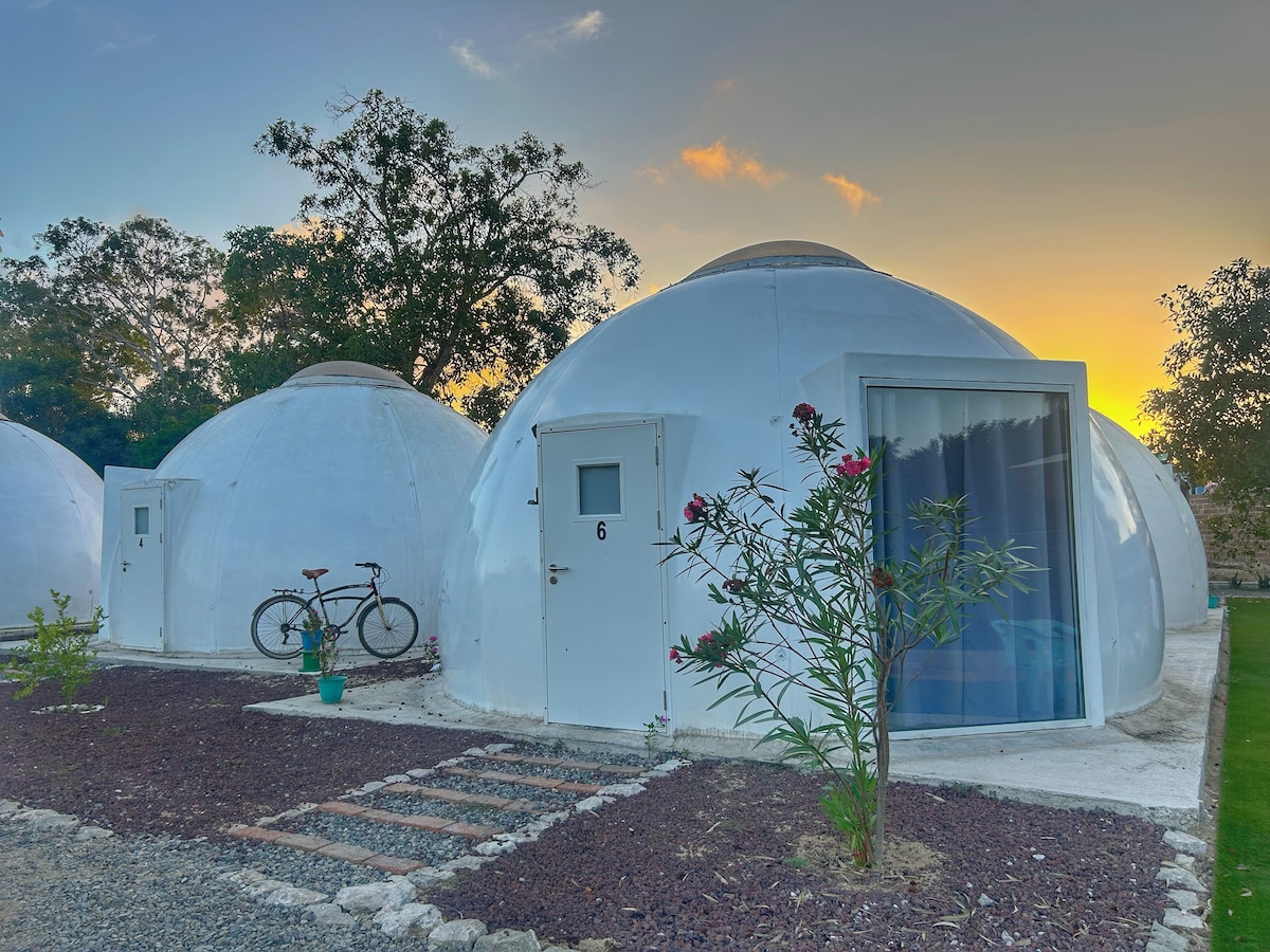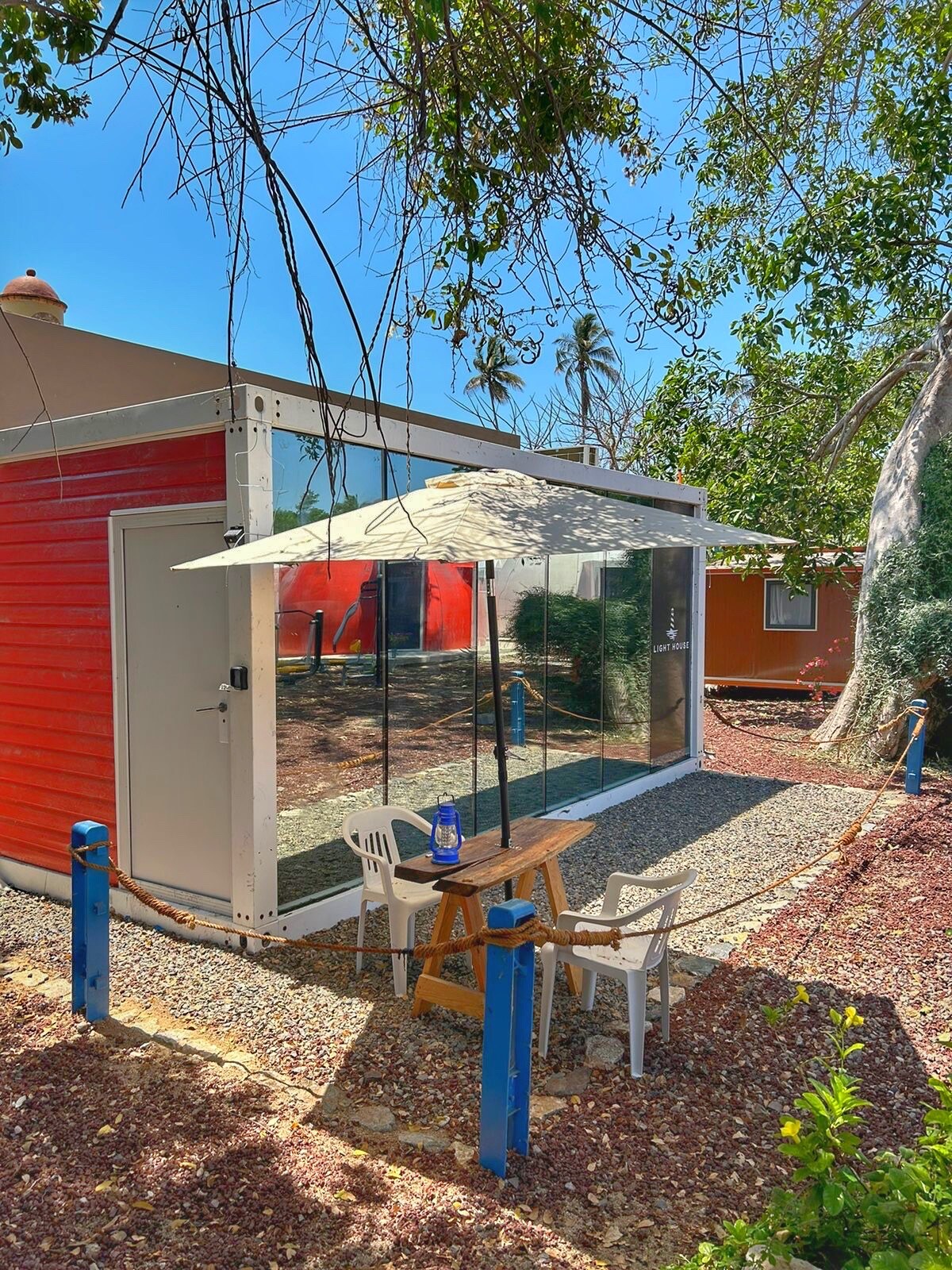 Apple House сделан из грузового контейнера. В ней есть спальня с двуспальной кроватью размера King size, кондиционером, полностью оборудованная мини-кухня. Кроме того, у вас будет Wi-Fi, Smart TV и 12-метровый бассейн, чтобы вы могли плавать и отдыхать в 7 шагах от жилья, кровати для загара, барбекю, волейбольная площадка и петанк, тренажерный зал и костер. До пляжа всего 12 минут ходьбы или 6 минут езды. Мы берем напрокат велосипеды для вас во время вашего пребывания.