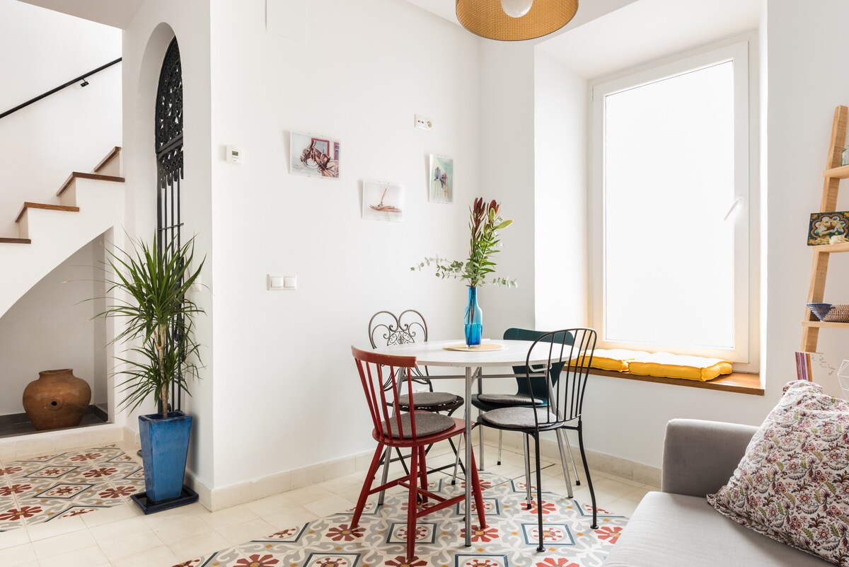 Эта двухуровневая квартира расположена на тихой мощеной улице у садов Алькасар с оживленной напольной плиткой, просторными спальнями и письменными столами, вымытыми при естественном освещении. Отдельный вход и отсутствие общих зон с другими гостями или соседями.