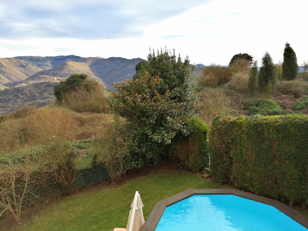 Для семей: отдельный дом с большим джакузи в застекленной беседке в саду, недалеко от Овьедо, 4,5 км, с небольшим бассейном. -Без вечеринок и мероприятий - С видом на горы, в идеальной зоне для начала маршрутов, со всеми удобствами, удобствами и оборудованием. В распоряжении гостей большое джакузи на открытом воздухе, небольшой бассейн, барбекю, огород, оборудованный тренажерный зал, батут, хороший Wi-Fi и всевозможные игры и видеоигры. Мы разрешаем проживание с домашними животными, которые уже живут вместе.