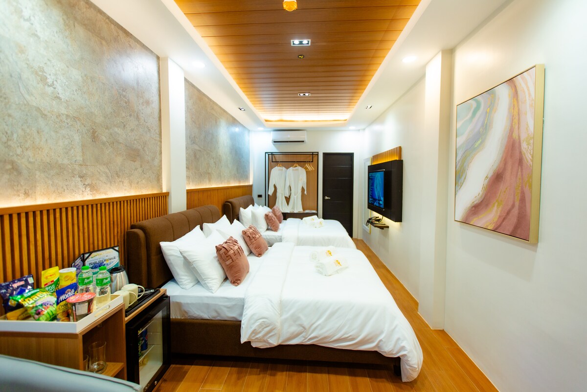 Наши НОМЕРА DELUXE идеально подходят для путешественников, ищущих комфорт и доступность. В этих номерах есть уютные кровати, современные удобства и уютная атмосфера. К услугам гостей просторная гостиная, мини-барная стойка и отдельная спальня с двумя односпальными кроватями. Если вы приезжаете на короткий срок или на длительный срок, наши номера Deluxe предлагают комфортный отдых. В квартире есть 2 кровати.