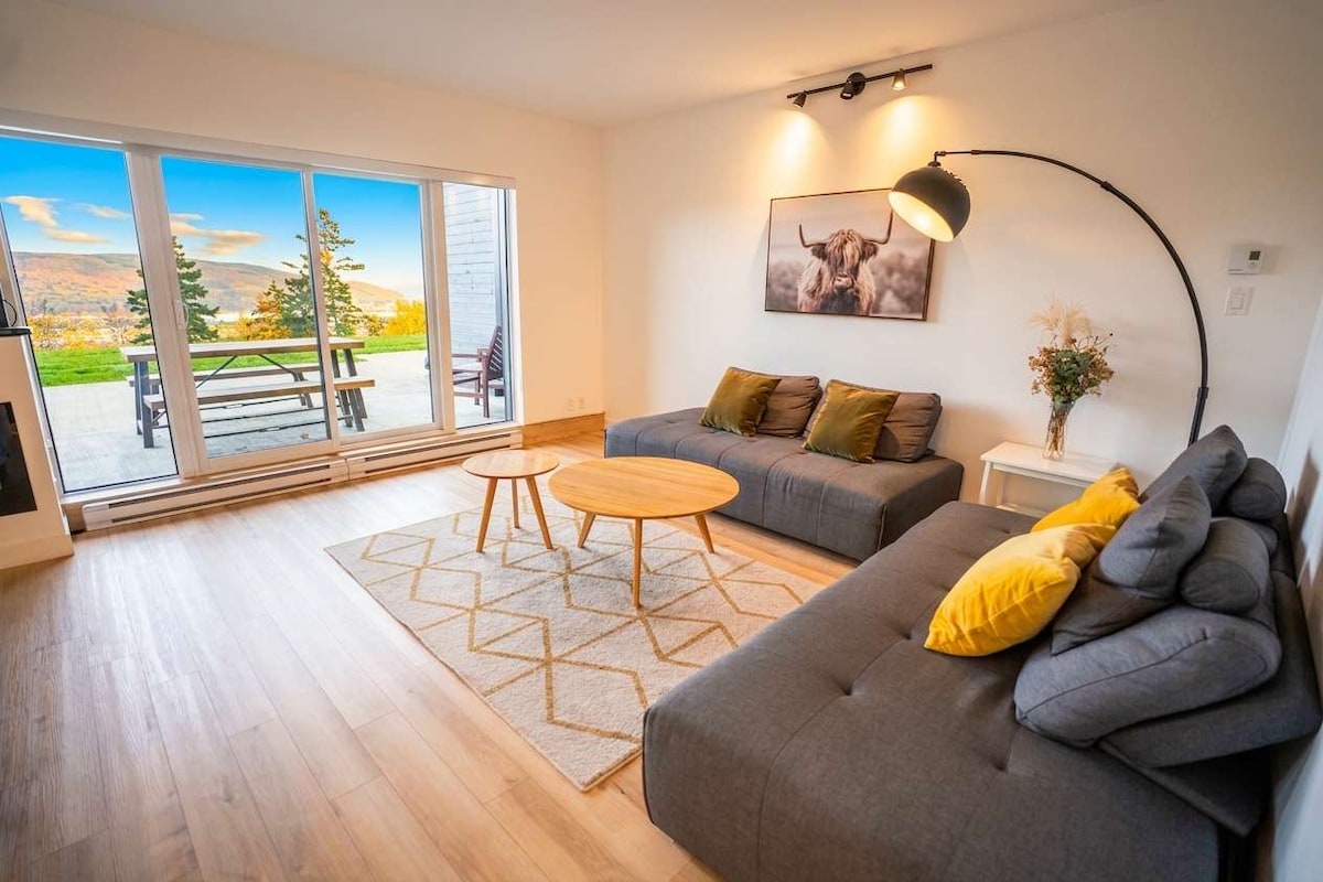 Это стильное жилье идеально подходит для групп, будь то друзья или семья. Три спальни с большими кроватями (queen-size) и две удобные и практичные односпальные кровати. Вы получите потрясающий вид на Бе-Сен-Поль и Иль-о-Кудр с захватывающими восходами. В распоряжении гостей две ванные комнаты, полностью оборудованная кухня, стиральная и сушильная машины. Кроме того, доступ к первому этажу очень удобный.