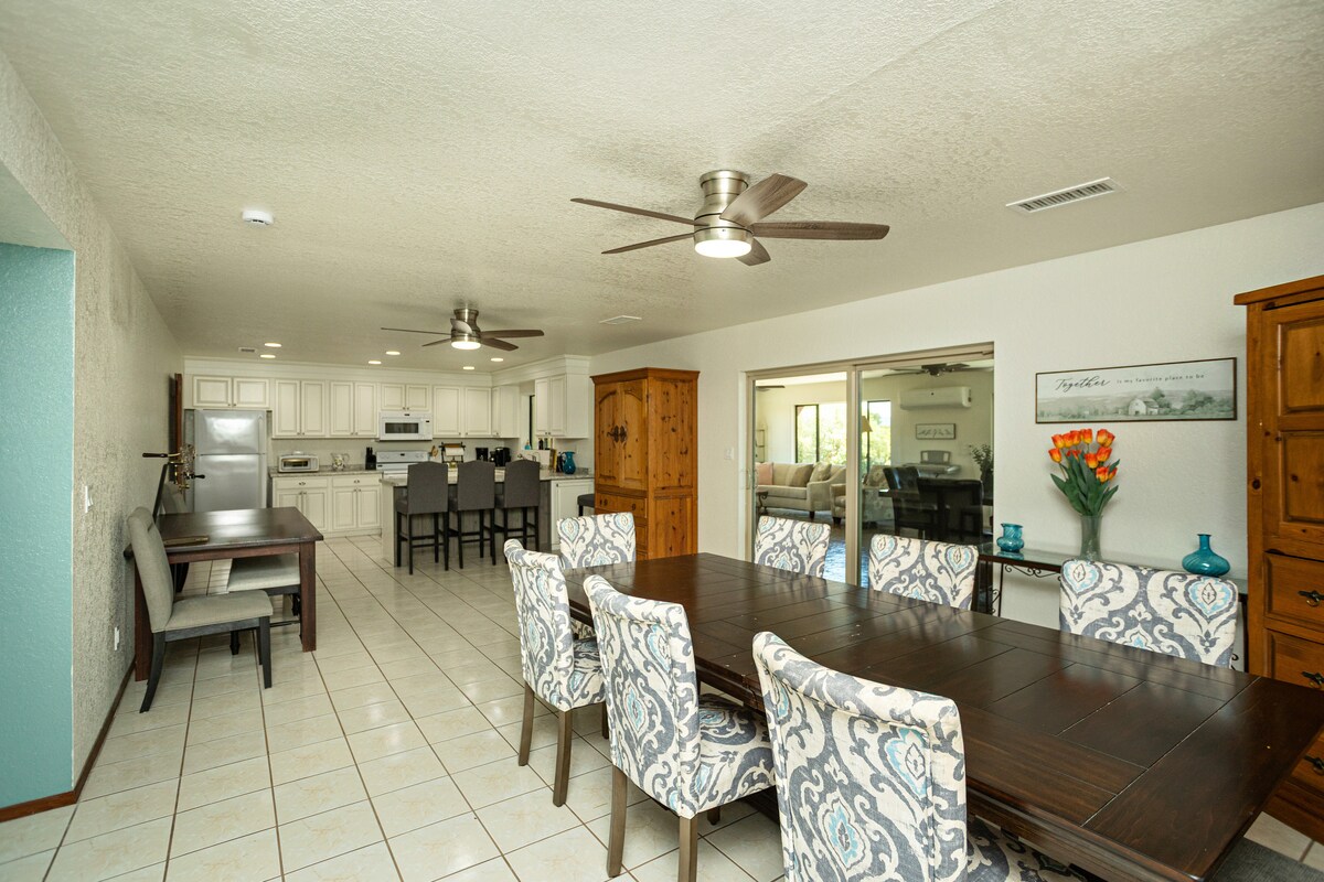 Красивый и свежий ~ в этом недавно отремонтированном доме в очень тихом районе есть гидромассажная ванна, бассейн, гриль, костер и роскошная мебель. Идеально подходит для работы из дома и менее чем в 30 минутах езды от Седоны и всей долины Верде. Хорошо укомплектованная кухня, плюшевые спальни с телевизорами и письменными столами. Потрясающие подробные профессиональные фотографии хозяина Яна Уайтхеда окружают вас волшебной красотой Седоны и юго-запада. Побалуйте себя после веселого дня и возвращайтесь сюда, чтобы отдохнуть со стилем.