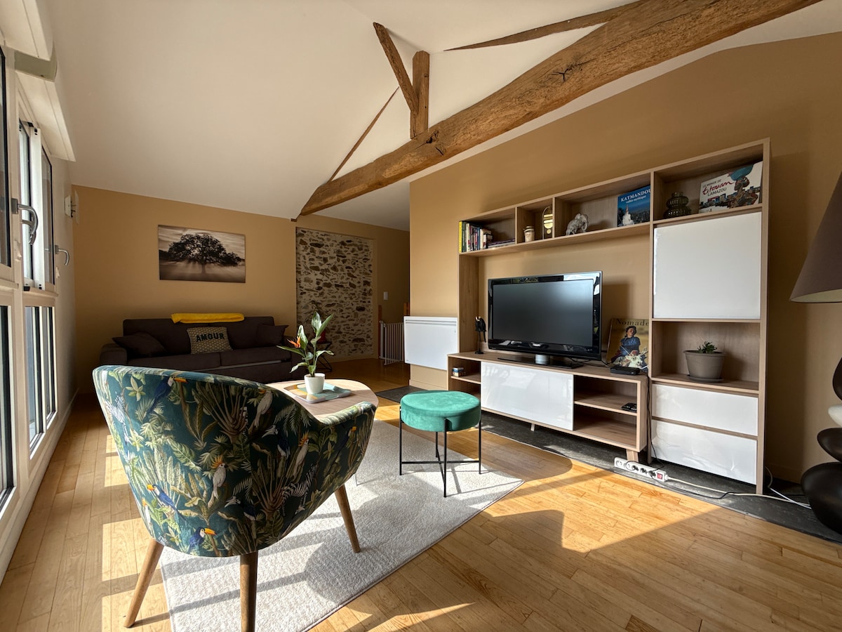 Расположенный в 35 минутах от Puy du Fou Cap at the p'tit pont приветствует вас в тихой и зеленой обстановке. Часть длинного дома с отдельным входом полностью в вашем распоряжении. Дружелюбное пространство с атмосферой бистро, где вы можете развлечься играми, а также отдохнуть на веранде с неограниченным доступом к спа. Частный бассейн 4x2 открыт 1 мая, с солнечным нагревом, поэтому мы не можем гарантировать точную температуру.