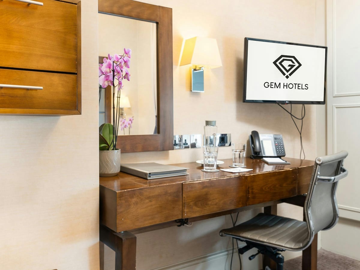 Представительский двухместный номер в 54 Queen's Gate оснащен кондиционером, кроватями с пружинными матрасами и постельным бельем из 100% египетского хлопка. В номере есть роскошные туалетные принадлежности, душ с электроприводом, настенные розетки с прямым подключением к USB, сейф в номере и прямой телефон, а также бесплатная бутилированная вода, принадлежности для приготовления кофе и чая, а также интерактивный смарт-телевизор с Chromecast. Площадь комнаты 10 кв. м.