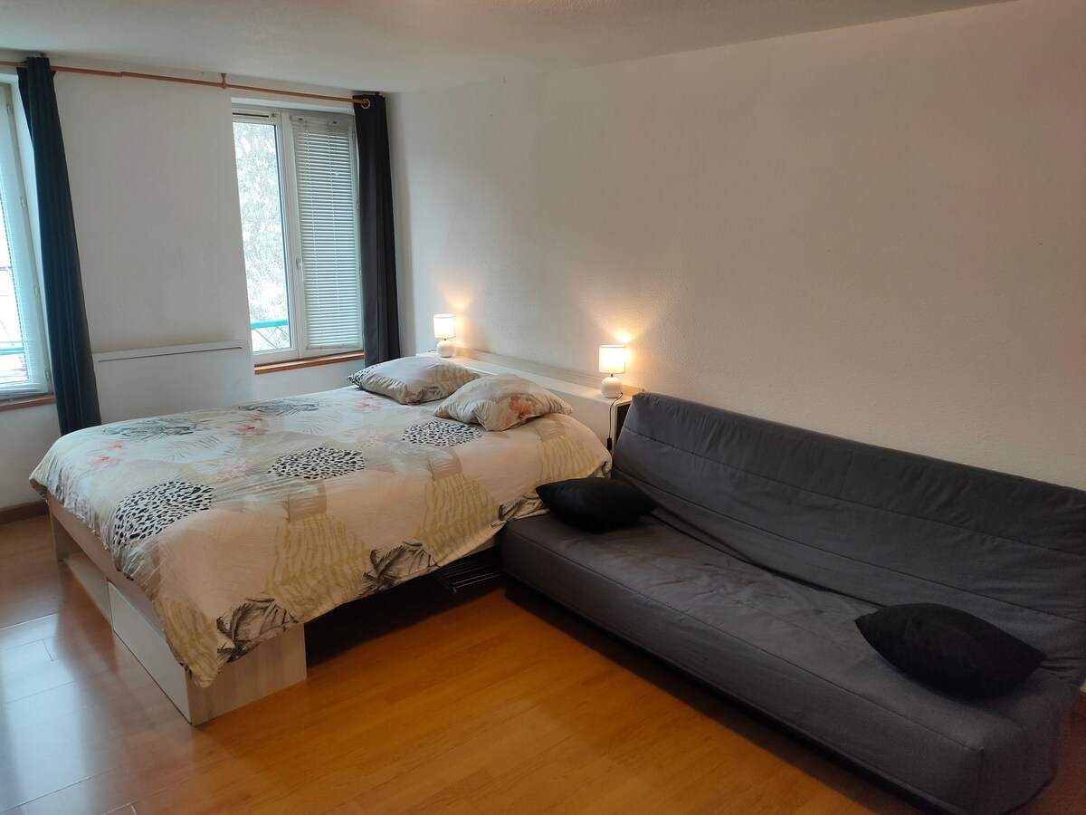 Красивая квартира площадью 55кв. м, тихая и солнечная, рядом со всеми удобствами, в 10 минутах ходьбы от центра города, в 25 минутах езды от горнолыжных склонов на машине, в 25 минутах от озер и в 60 км от Женевы ( Швейцария). Вы можете совершать очень приятные прогулки, не садясь за машиной (водопад с лошадиным хвостом, флуменом, ослиным хвостом, Combes , Vuivre...). Посетите собор Святого Петра, музей труб и алмазов, музей аббатства...