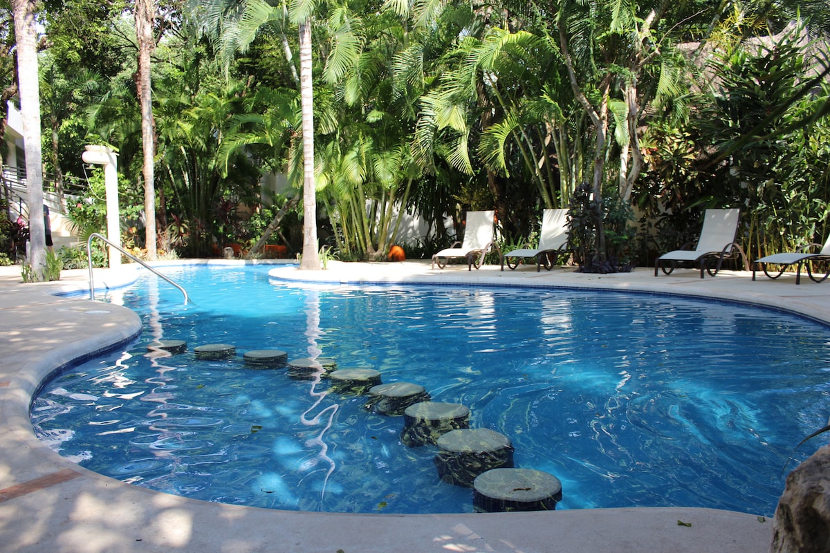 Расслабьтесь в нашем красивом современном люксе в Косумеле! Полностью оборудованный люкс идеально подходит для 3 взрослых с удобной двуспальной кроватью размера King size и диваном-кроватью. Отдохните на собственном балконе и насладитесь потрясающим видом на океан. Насладитесь освежающим купанием в нашем сверкающем бассейне, приготовьте на гриле пир и почувствуйте себя в безопасности с круглосуточной охраной. Мы также предлагаем бесплатную парковку и Wi-Fi для вашего удобства. Исследуйте остров! Аренда скутеров и квадроциклов также предоставляется за дополнительную плату.