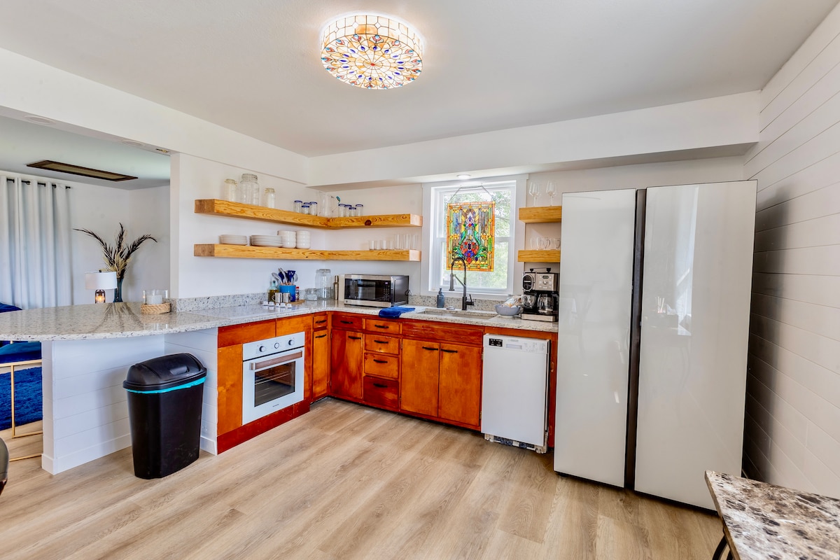 Cozy Corners, built in 1945, offers approximately 900 sq. ft. You, my guests, are recipients of the wall verses that I put on the walls while I was living there, before I knew the house's future occupation. Due to my personal life style and choices, I do not provide TV, but I am now offering WiFi. Pets (pet fee applies) and children are welcome, but no additional supplies are provided at this time. A Ring doorbell monitors both outside doors. Come enjoy my favorite home town known as mural city.