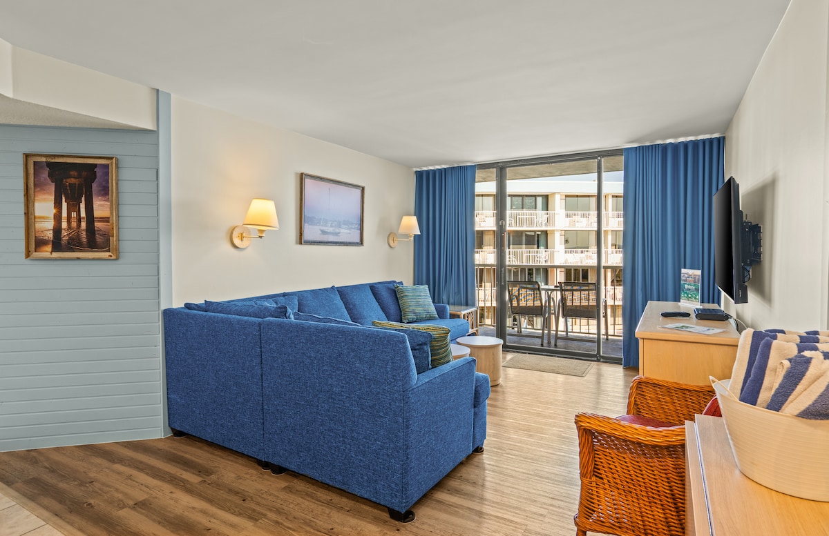 Яркий, просторный и пляжный кондоминиум в Ocean Gallery Pairs, удобства курортного типа с исключительно чистым, стильным и комфортабельным кондоминиумом. Идеально подходит для пары или одной семьи, в нем могут разместиться до 4 кроватей (основная кровать вмещает 2 человека; раскладной диван в гостиной вмещает 2 дополнительных гостя - идеально подходит для детей). Вы будете в нескольких шагах от одного из 2 бассейнов, а 5-минутная неторопливая прогулка по комплексу приведет вас на пляж!