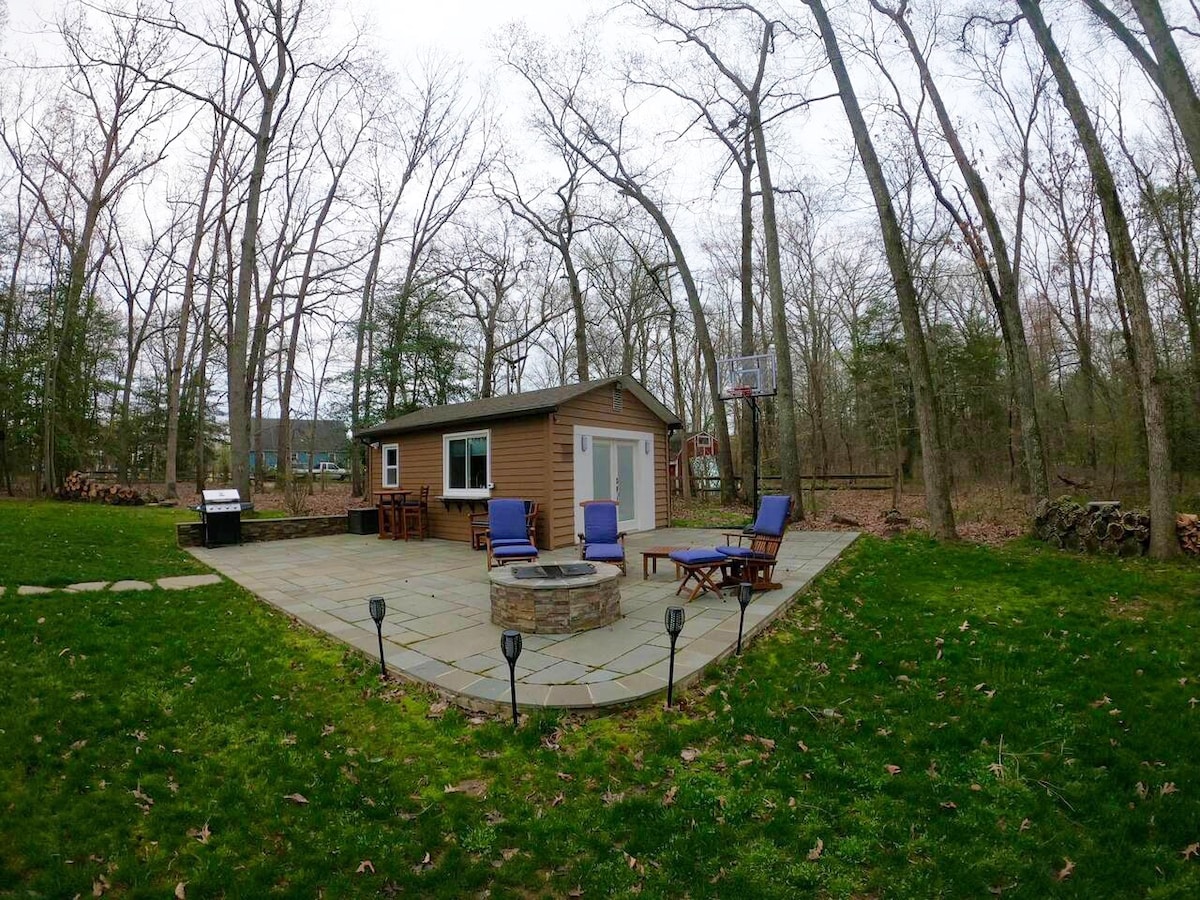 Newly renovated, immaculate two room tiny home. A stand-alone gem nestled against a wooded backdrop - well back from the main home - and wrapped in a huge, teak-furnished, blue stone patio with fire pit situated in a sunny opening in the mature tree canopy. Super comfy queen Murphy bed offers easy conversion of the well lit and modern main living space from living room & kitchen by day to main sleeping quarters at night. The adjoining room is a well appointed full bath and dressing area.