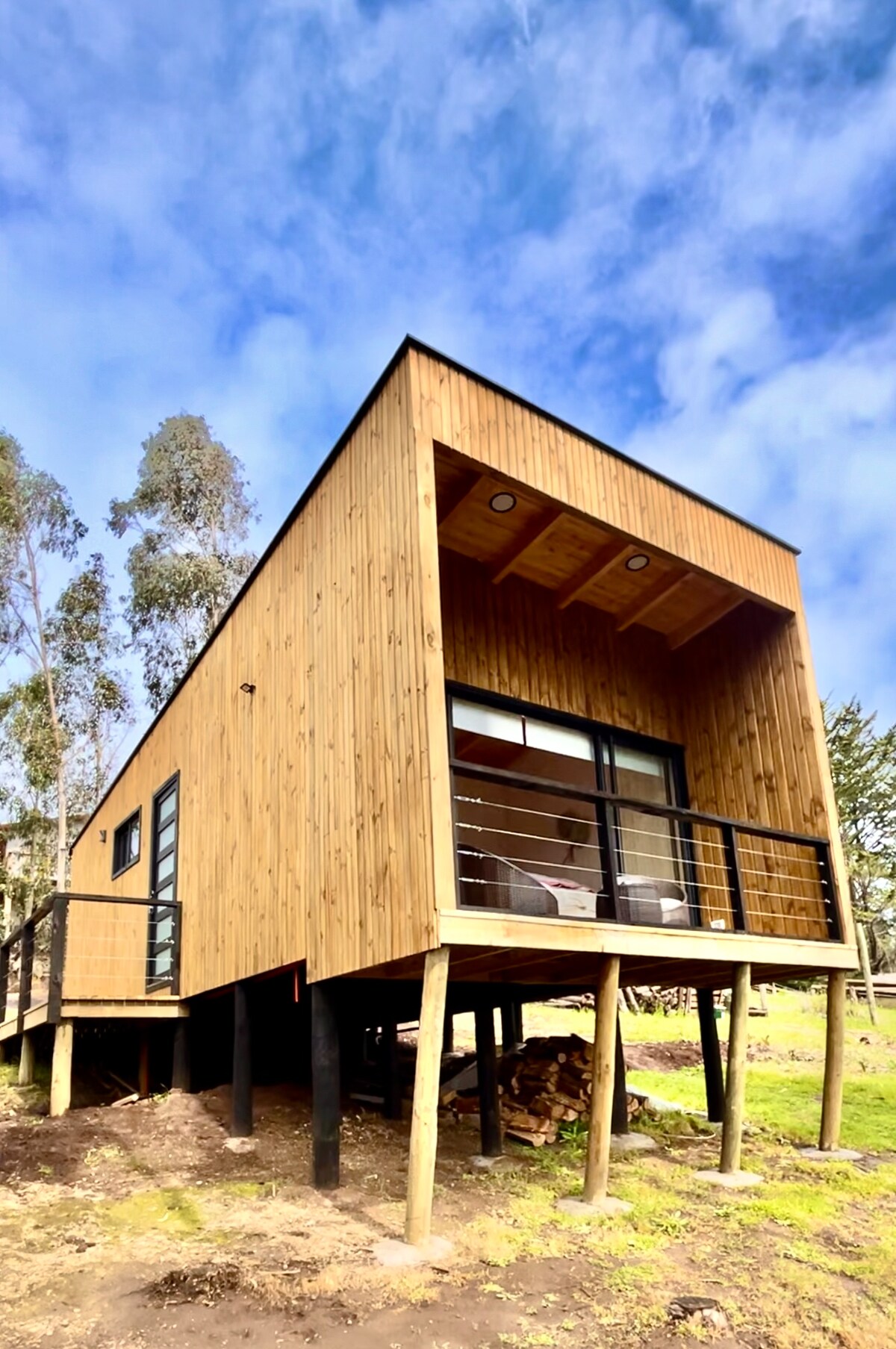 Wooden cabin with hot tub & Starlink, overlooking Cáhuil Lagoon and native forest. Secluded for silence, yet close to beaches, sightseeing, restaurants, and shops for all essentials. Features sunny terraces, skate ramp, fire pit, and gas/wood BBQs. Full cell signal and fast WiFi make it the perfect nature getaway.
