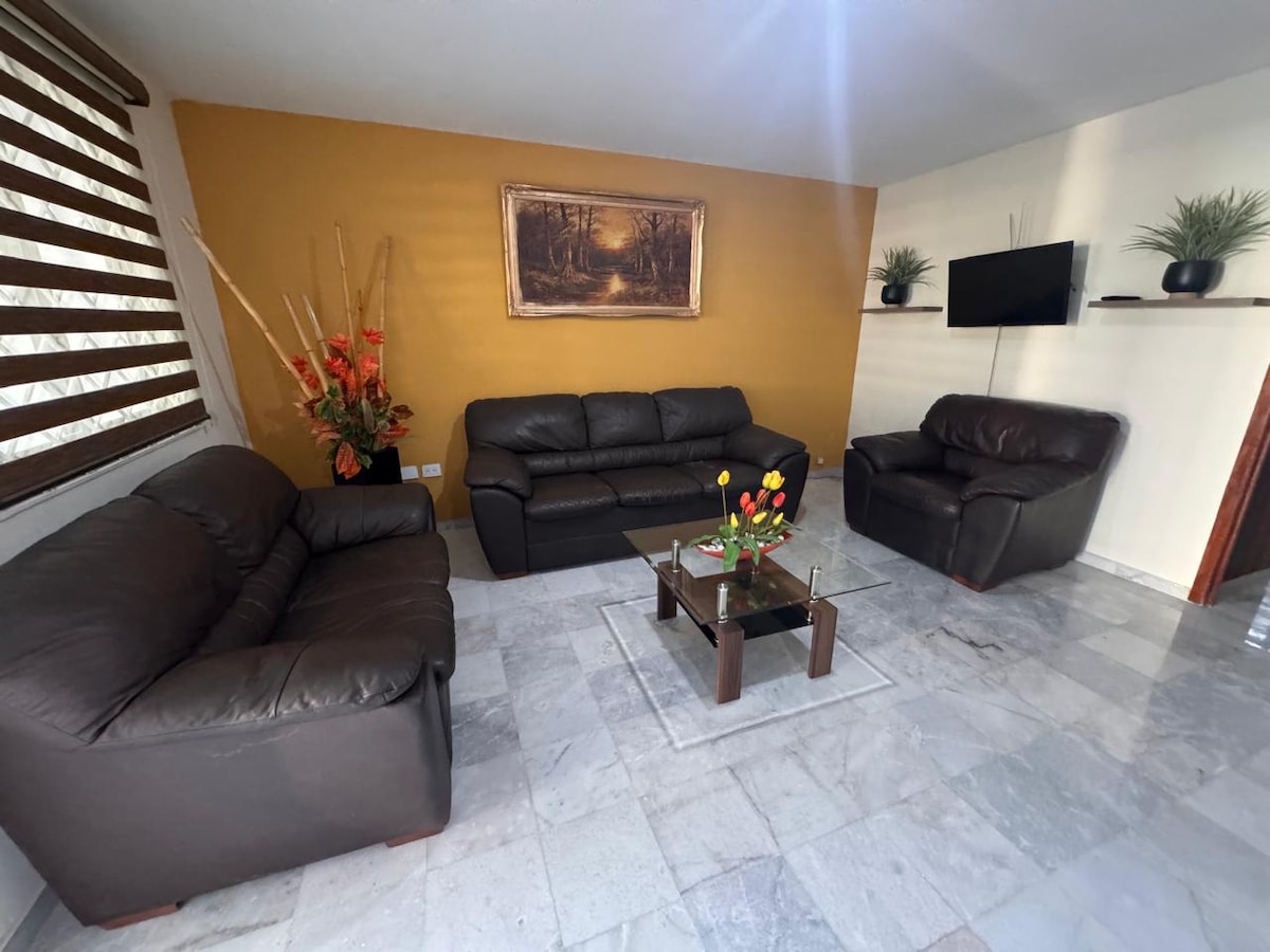Насладитесь простотой этого тихого и центрального жилья, которое позволит вам почувствовать себя как дома. Всего в 5 минутах от ботанического сада и университетского города. 10 минут от центра города, торговых центров, заведений всех видов еды, больниц и набережной города. Общественный транспорт в одном квартале от жилья. Продуктовые магазины tortillerías в квартале отсюда. Кондиционер только в спальне, в гостиной есть два вентилятора.