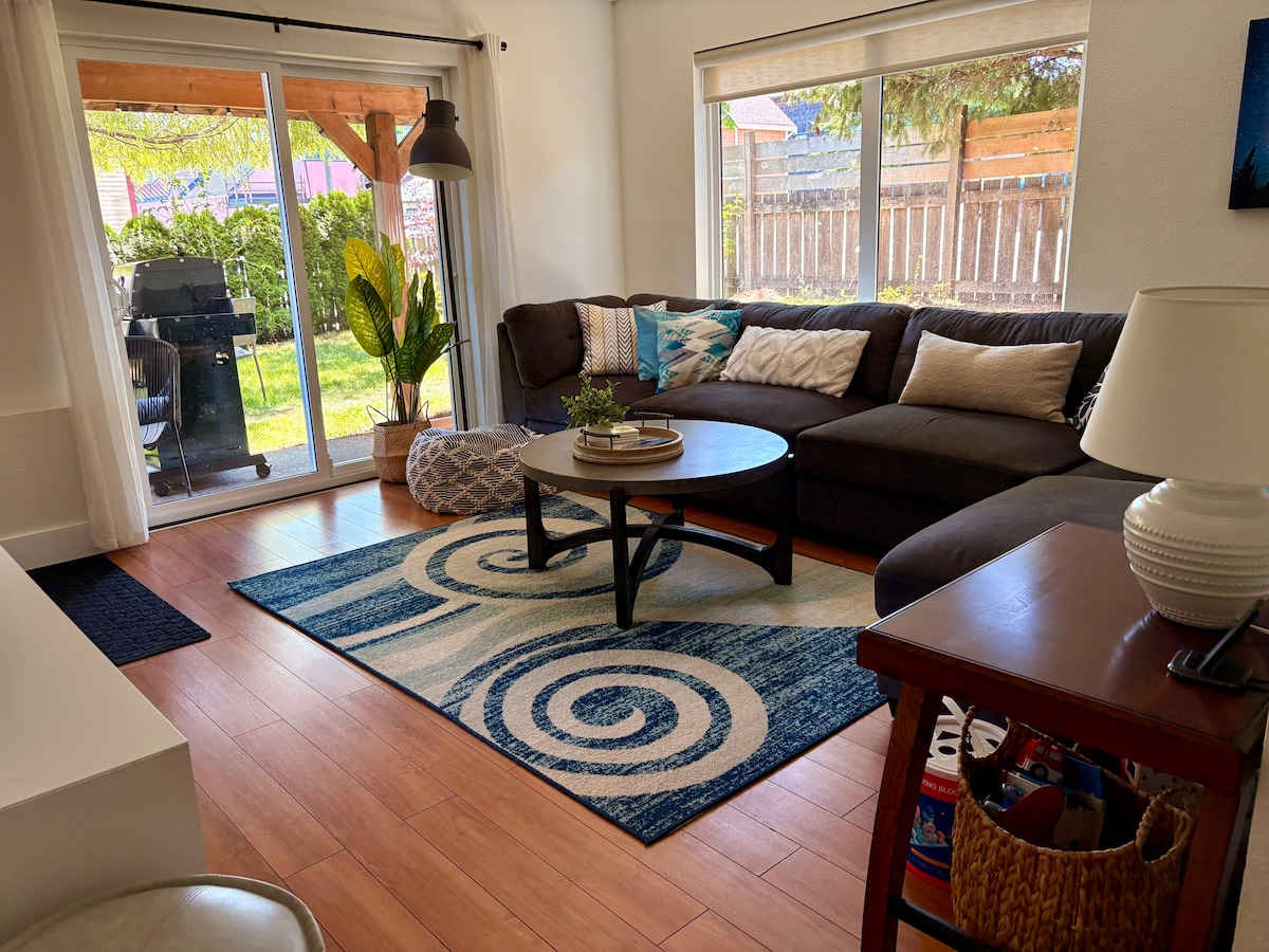 Парковка рядом с воротами в полностью частный гостевой дом площадью 450 кв. футов с 1 спальней, местом для хранения велосипедов и большим частным патио. В двух кварталах от главной улицы. Две минуты езды до начала тропы. Полностью оборудованная кухня, стиральная машина/сушилка, большая ванна/душ и современный газовый камин, который идеально подходит для разогрева после дня на тропах, на берегу моря или на горе. Вашингтон. Кондиционер летом, два 50-дюймовых смарт-телевизора (гостиная/спальня). Лучше всего подходит для 2 взрослых, но есть раскладной диван, так что семьи с 2 детьми могут разместиться в крайнем случае.