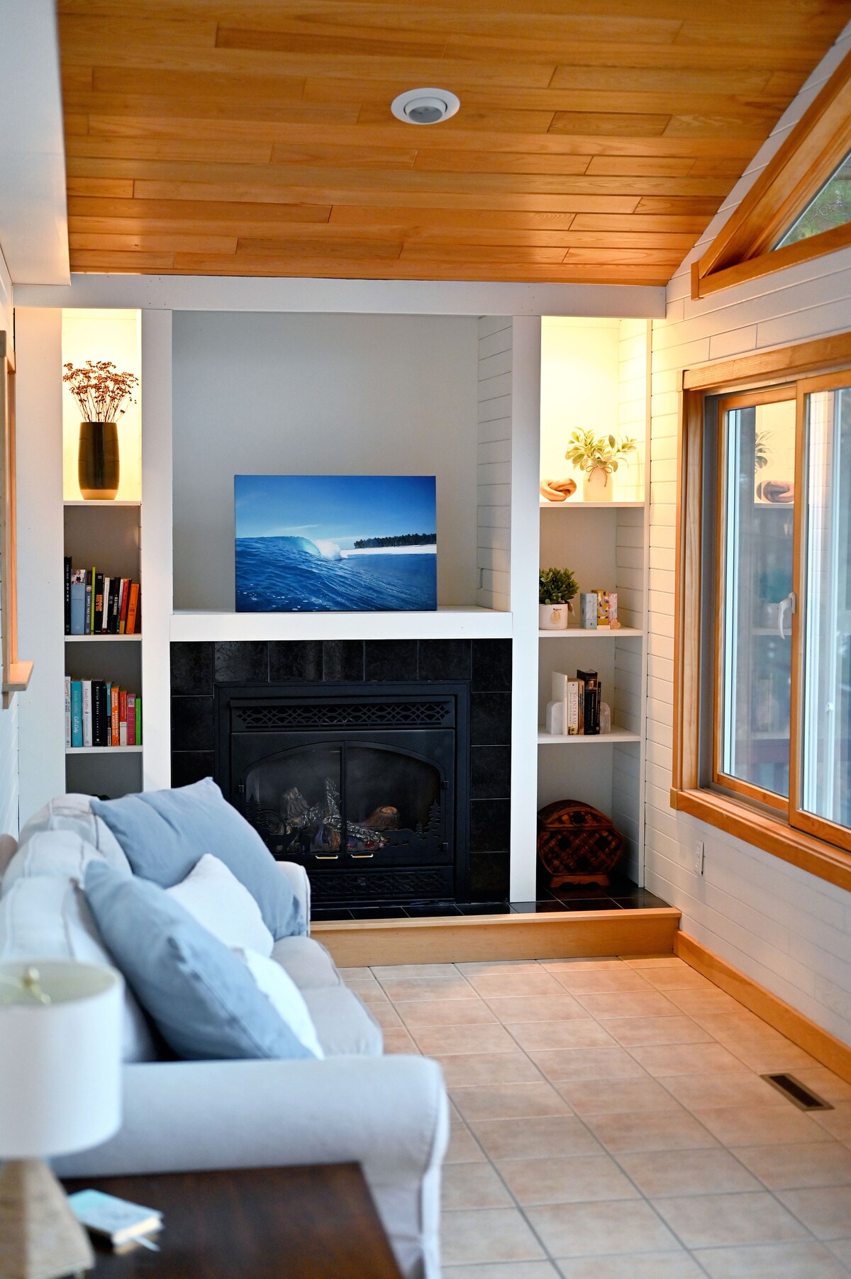 Ваш личный семейный побег к озеру! Полностью обновленный, спокойный и расслабляющий, но современный. Расслабьтесь и наслаждайтесь озером с террасы или пикников. Отложите линию с причала или на каяках или в мини-понтон! Насладитесь теплой ванной в новой джакузи и захватывающим душем, а затем уютно уютно добирайтесь до фильма перед электрическими каминами! Гриль для барбекю и ровная поверхность включены. Большой лофт с 2 кроватями размера Queen size и главная спальня с кроватью размера King size. Идеально подходит для бесценных семейных воспоминаний на озере. Оптоволоконный интернет тоже!