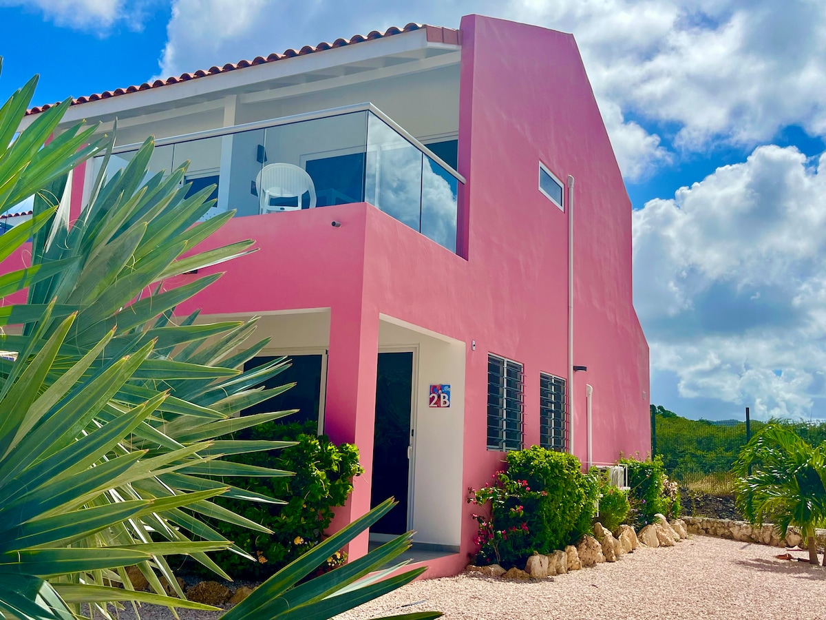 Дом с двумя спальнями и видом на море расположен в самом центре города. Жилье находится в 5-10 минутах ходьбы от пляжа Парасаса и Пиратского залива и в 5 минутах езды от центра Виллемстада, где расположено множество ресторанов и достопримечательностей. Другие популярные пляжи, такие как Мамбо, Кокомо, Голубой залив, в 15 минутах езды. Аэропорт в 15 минутах езды. В пешей доступности от дома есть несколько ресторанов.