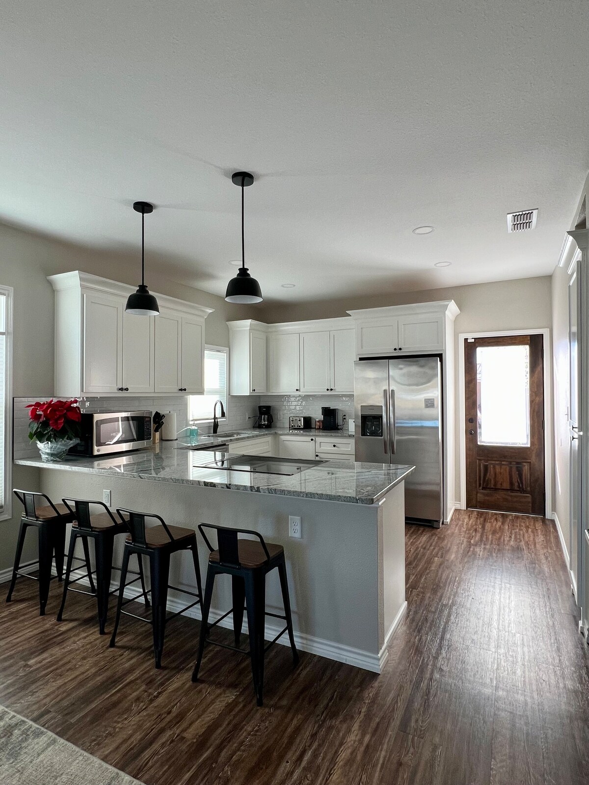 Этот дом с 3 спальнями и 2 ванными комнатами был полностью обновлен с новым интерьером и новой мебелью, предлагает комфортабельное жилье в удобном месте. В доме есть все удобства: телевизоры с плоским экраном, беспроводной интернет, гараж, центральное отопление и кондиционирование, огороженный двор, полностью оборудованная кухня, гранитные столешницы по всему дому, напольное покрытие из искусственного камня.