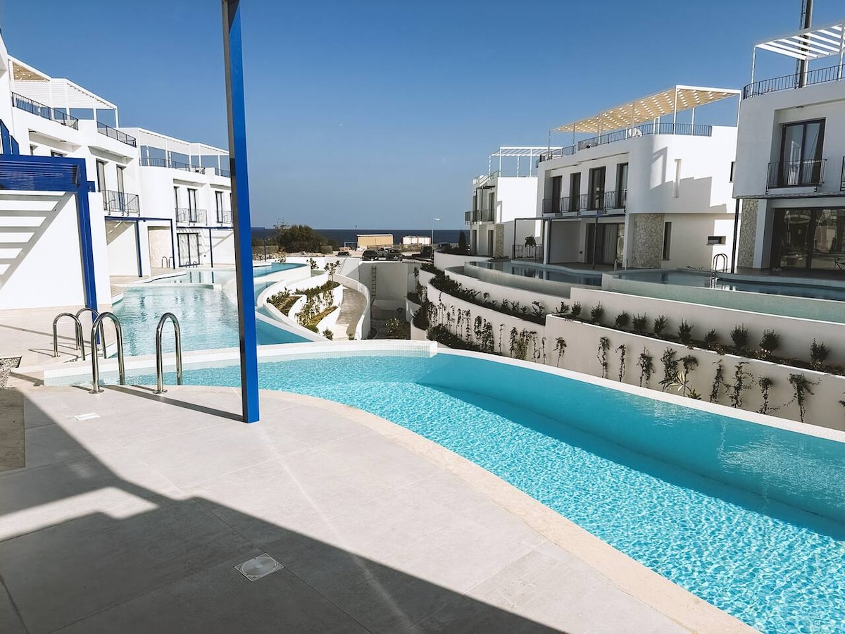Добро пожаловать в нашу уютную квартиру в эксклюзивном месте прямо на море! Она сочетает в себе высочайший комфорт и элегантный дизайн. С террасы, гостиной и панорамного бассейна открывается захватывающий вид на море. Этот стильный оазис предлагает вам абсолютный отдых и отдых. Идеально подходит для любителей гольфа: международный гольф-клуб Korineum находится всего в пяти минутах езды. Нетронутый пляж находится прямо за дверью и обещает незабываемые впечатления от природы.
