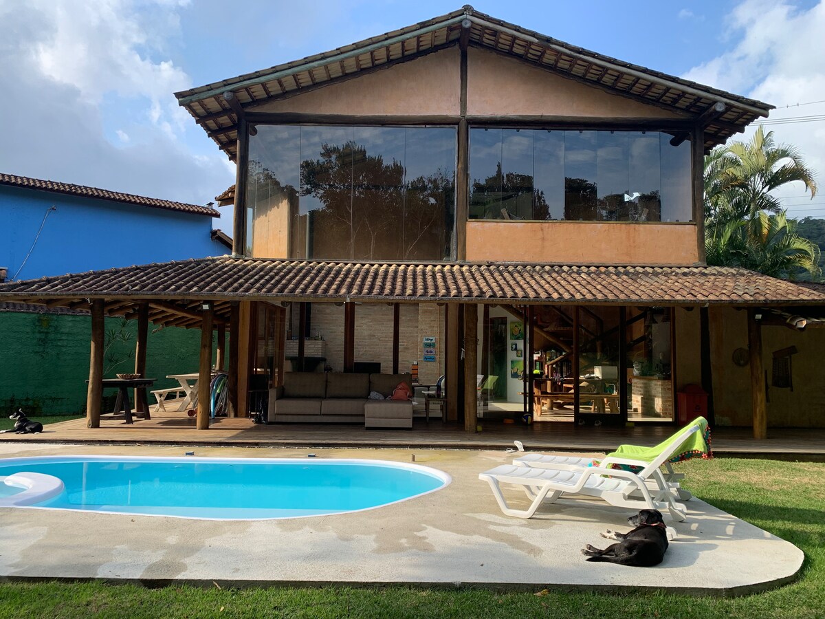 Представьте себя в месте, где все было подготовлено по прихоти, так что у вас есть уникальный опыт: воздух фермы в сочетании с красотами моря и в легкодоступном месте рядом с шоссе. Это Casa das Mangueiras! Расположенный между шланговым лесом и пляжем, дом предлагает тихую, зарезервированную обстановку с эксклюзивным бассейном с подогревом для вас. Намасте. Мы принимаем 1 питомца за проживание до 20 кг.