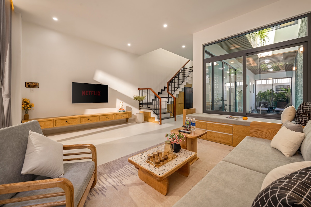 🏡 Welcome to FEN VILLA❤️ 🛏️ 5 bedrooms – 6 beds – 6 bathrooms – spacious living room & kitchen with AC and ceiling fans 💦 Private pool cool – floating toys included 🎱 Billiard table – free BBQ charcoal 🍉 Complimentary welcome fruits & drinks ✈️ Free airport pickup for bookings of 4 nights or more 🌴 With a warm tropical style, the villa is perfect for groups of friends, colleagues, or families 🏖️ My Khe Beach is just a 5-minute walk away, surrounded mini-marts, cafés, and restaurants😍