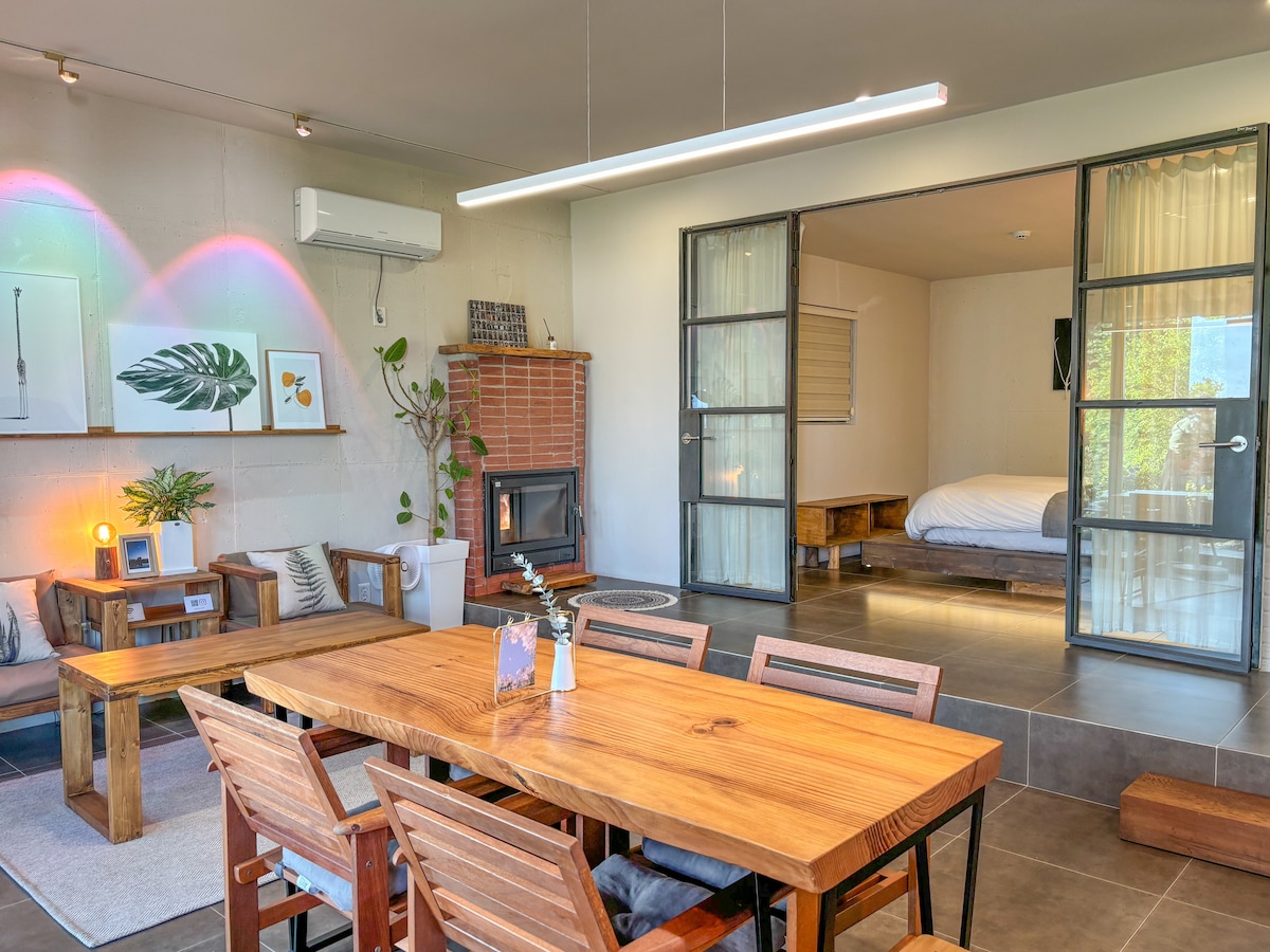 Это стильное жилье на безмятежной дороге по соседству из Саге-ри в море Саге, где есть много мест для посещения. Это добавило удобства и комфорта к стильным элементам интерьера. Гора Санбангсан и каменные стены из главной спальни и спокойное голубое поле за ее пределами создают ощущение покоя, а теплая чайная комната превращается в уютный театр ночью. Откройте для себя что-то особенное на кухне с каменной стеной и в помещениях, которые придают ей цвет. Мы снизили первоначальную цену с 2025 года и не предоставляем приветственный набор, который был ранее предоставлен. Спасибо за понимание. Instagram: sigor_house