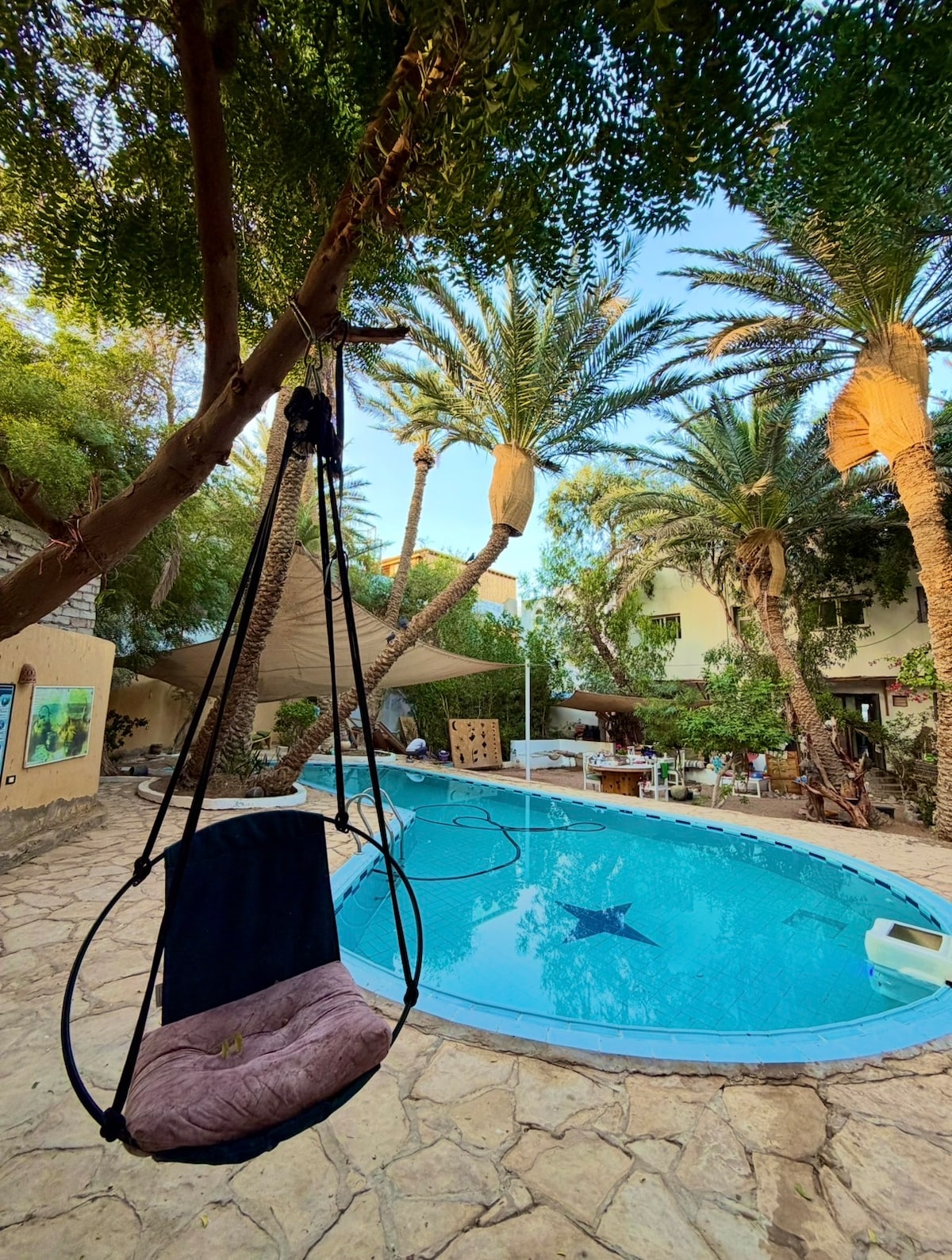 Tucked away in a quiet local neighborhood, this hidden Dahab gem offers comfort and privacy with a true sense of retreat, while still being only an 8-minute walk from the lively Lighthouse area and the beach. Wake to the sound of roosters and enjoy your morning coffee in the garden. At sunset, head up to the rooftop for sweeping views of Sinai’s changing colors, then end the evening around the peaceful garden fire under a sky full of stars, with the city glowing in the distance.
