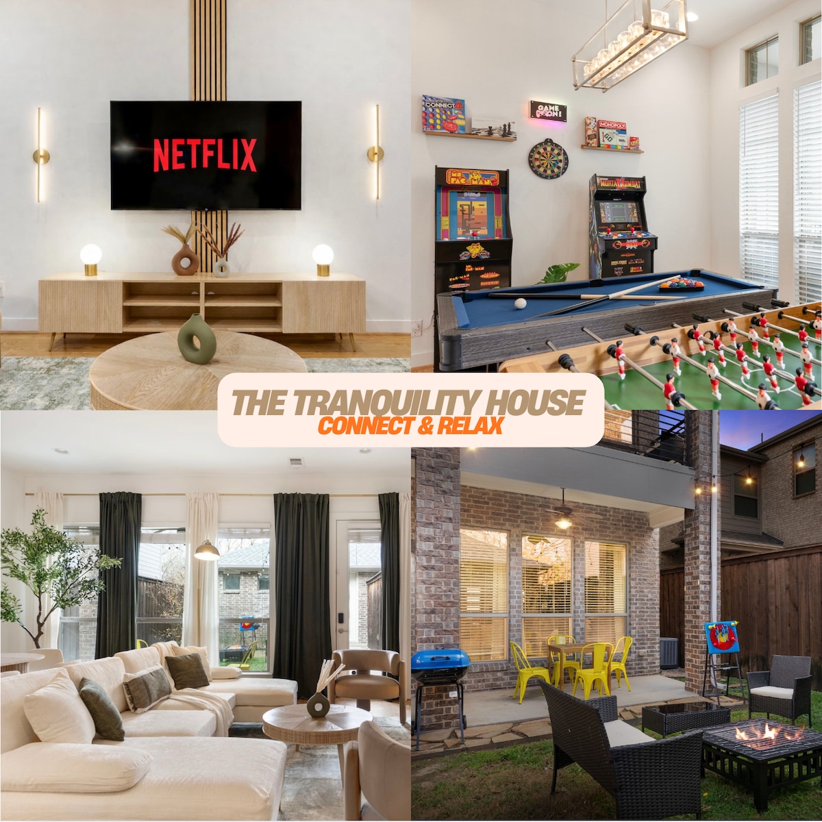 Добро пожаловать в наш дом! Изысканный шикарный современный дизайн отличается исключительной функцией в этом просторном современном доме. •ОТЛИЧНОЕ РАСПОЛОЖЕНИЕ - 12 минут от аэропорта, быстрый и легкий доступ ко всем основным шоссе. В 15-20 минутах езды от центра Далласа и рядом с несколькими ресторанами и барами! •Полностью укомплектованная кухня и кофейня. •Плюшевые матрасы и подушки. •встроенные колонки по всему пространству; •Wi-Fi и телевизоры Smart TV в 5 минутах ходьбы от дома. • камин в помещении и на улице;