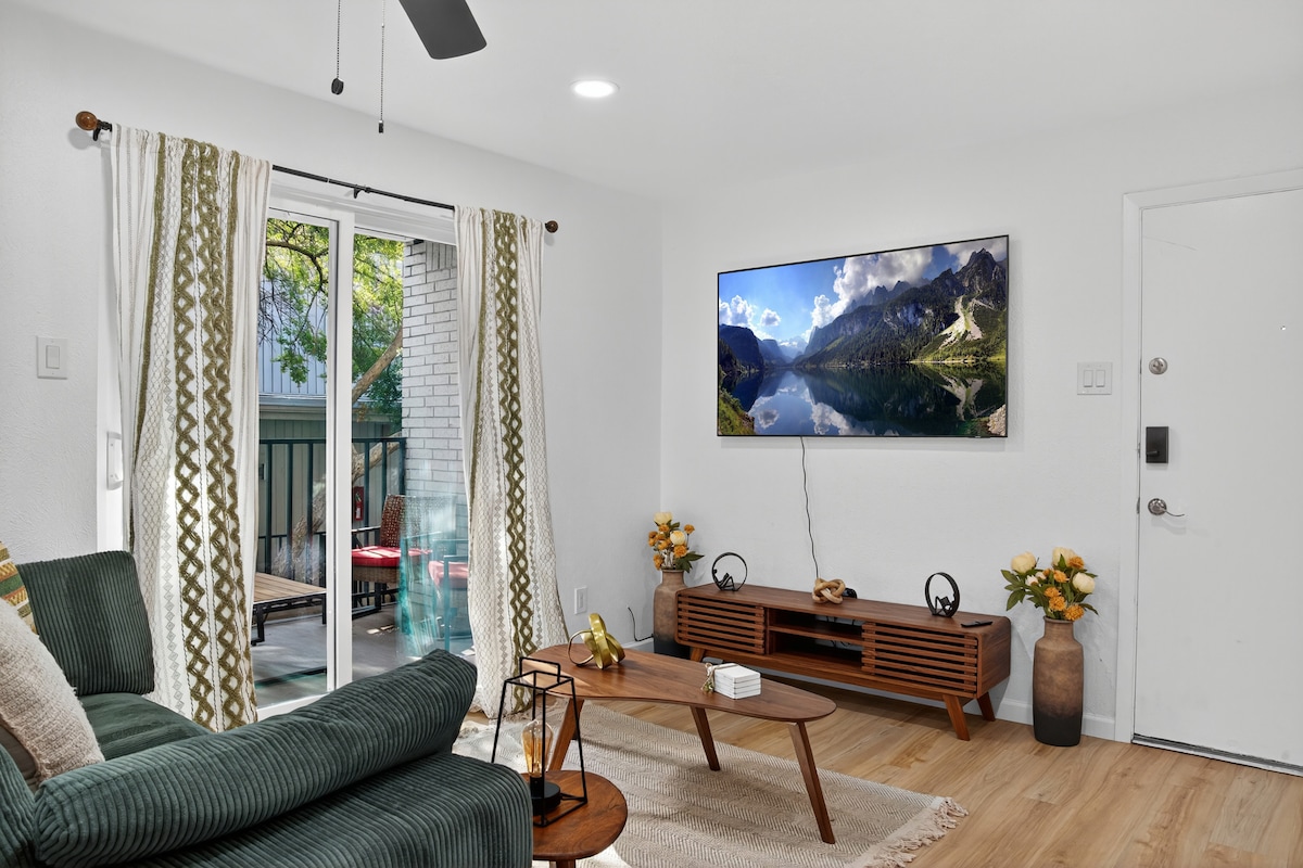 Добро пожаловать в ваш дом вдали от дома в Далласе, штат Техас, - идеальное место для путешественников, ищущих комфорт, удобства и изысканности. Наше уютное корпоративное жилье предлагает исключительный отдых, спроектированный с учетом ваших профессиональных потребностей. ✔ Полностью оборудованная кухня. ✔ Просторные 2 спальни, 2 ванные комнаты ✔ 1 кровать размера King size/1 кровать размера Queen size ✔ Один 65-дюймовый телевизор Smart TV в гостиной. ✔ Один 40-дюймовый телевизор Smart TV в каждой спальне. Место для✔ офиса ✔ Высокоскоростной Интернет. ✔ Бесплатная парковка на 2 машины ✔ Стиральная/сушильная машина ✔ Бассейн и фитнес