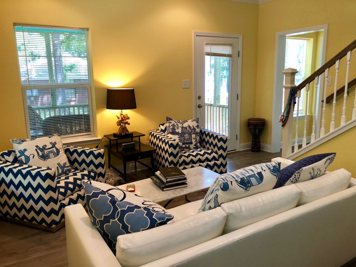 Дом Генри - это очаровательный коттедж, который является возвратом к старомодным островным домам, но он был построен в 2017 году. Он был спроектирован известным архитектором Эриком Мозером, а интерьер был сделан инсайдером HGTV. Это всего в нескольких минутах от пляжей, ресторанов и магазинов. Мы будем рады, если вы придете в наш любимый маленький домик, потому что любой, кто обожает барьерный остров побережья Мексиканского залива, находится в нашем племени. Ты даже можешь взять с собой свою собаку! Есть тенистый огороженный двор, в котором он может играть.