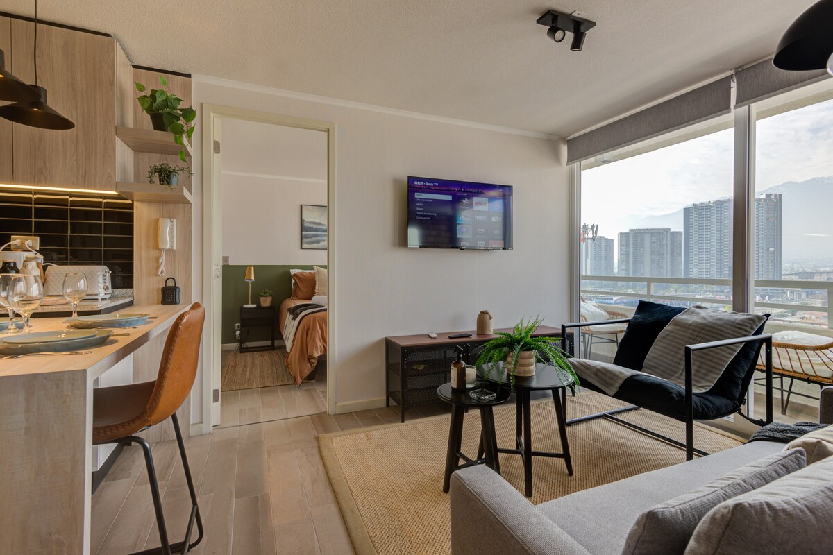 Наслаждайтесь современным, продуманным пространством в Ла-Флориде. Эта квартира с 1 спальней и 1 ванной находится перед торговым центром Mall Plaza Vespucio и станцией метро, идеально подходит для отдыха, работы или поездки на выходные. Оснащен всем необходимым: полностью оборудованная кухня, быстрый Wi-Fi, терраса, телевизор и частная парковка. Идеально подходит для пар или взыскательных путешественников, ищущих комфорт, стиль и хорошее расположение.