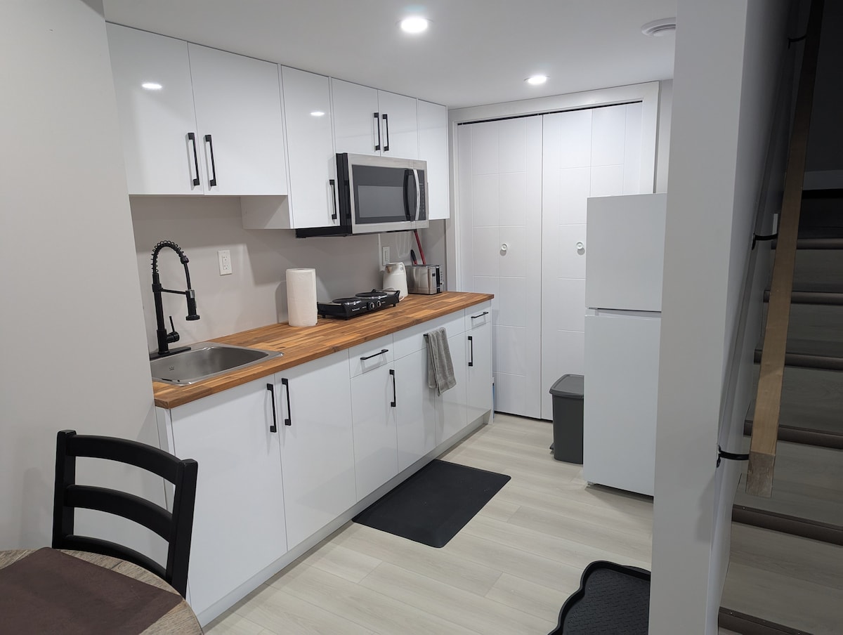 Мы создали теплую и гостеприимную атмосферу с учетом комфорта гостей. Если вы здесь, чтобы исследовать, расслабиться и/или просто насладиться сменой обстановки, этот люкс с 1 спальней оснащен уютной кроватью размера Queen size, ванной комнатой, гостиной, оборудованной мини-кухней и обеденной зоной, чтобы дать вам больше, чем просто место для сна. Здесь царит теплая атмосфера и расслабляющая обстановка, которая делает каждый момент таким особенным. Несколько минут езды до торговых центров, где можно купить все, что вам может понадобиться, и бесплатная парковка на подъездной дороге.